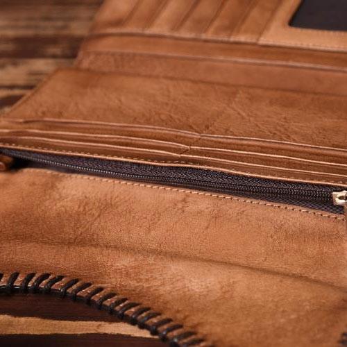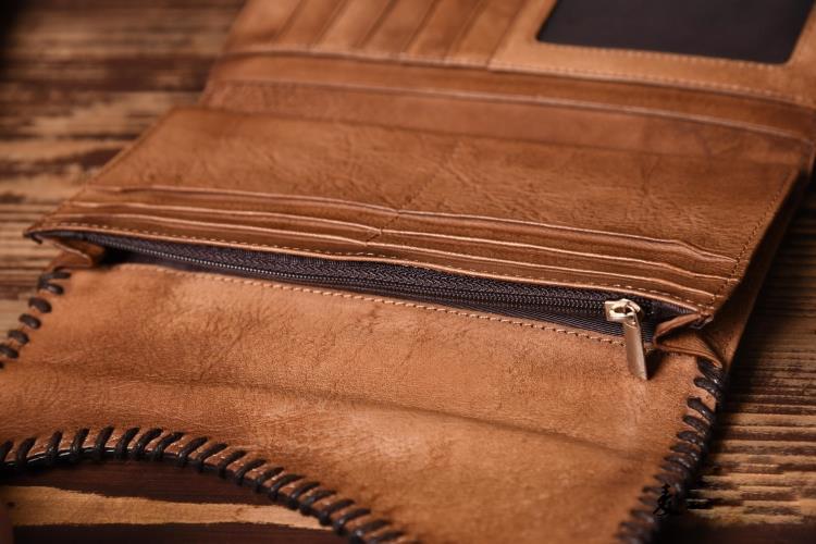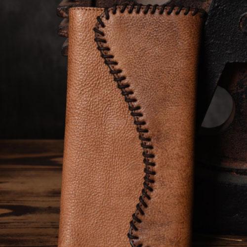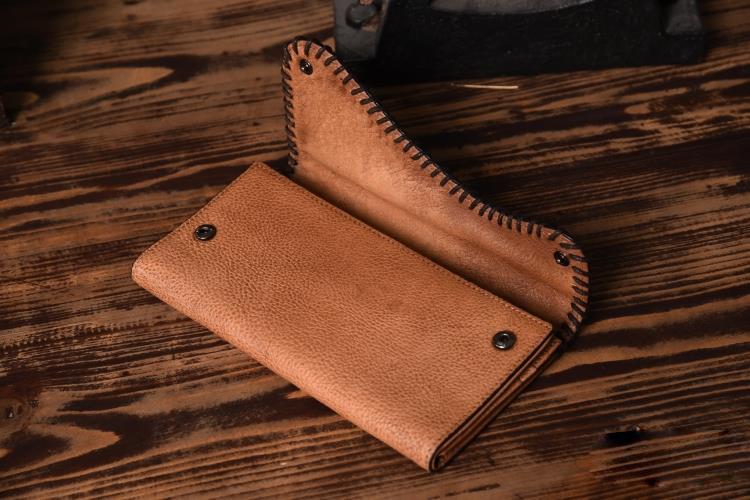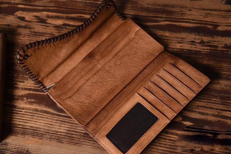 Design: Handmade Leather Mens Cool Long Leather Wallet Trifold Clutch Wallet for Men