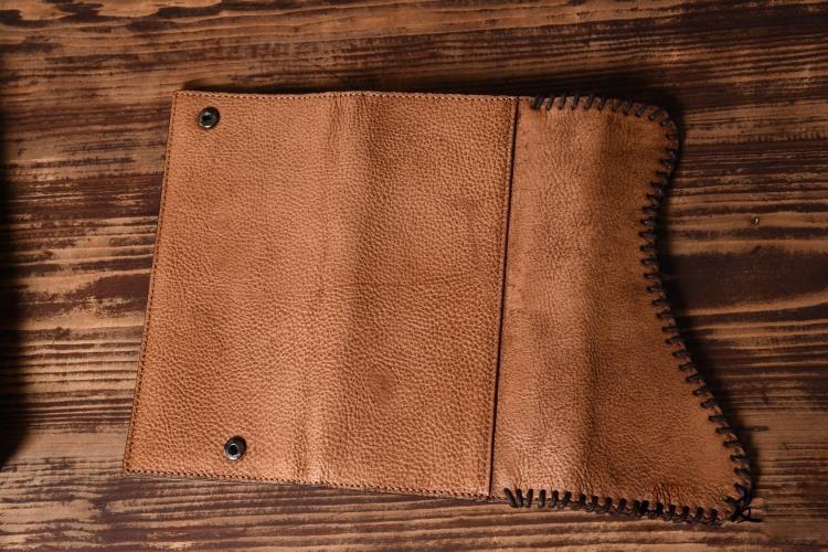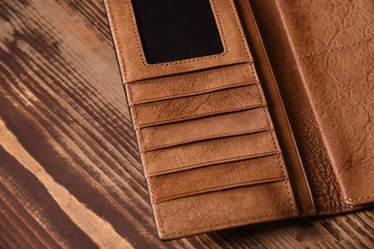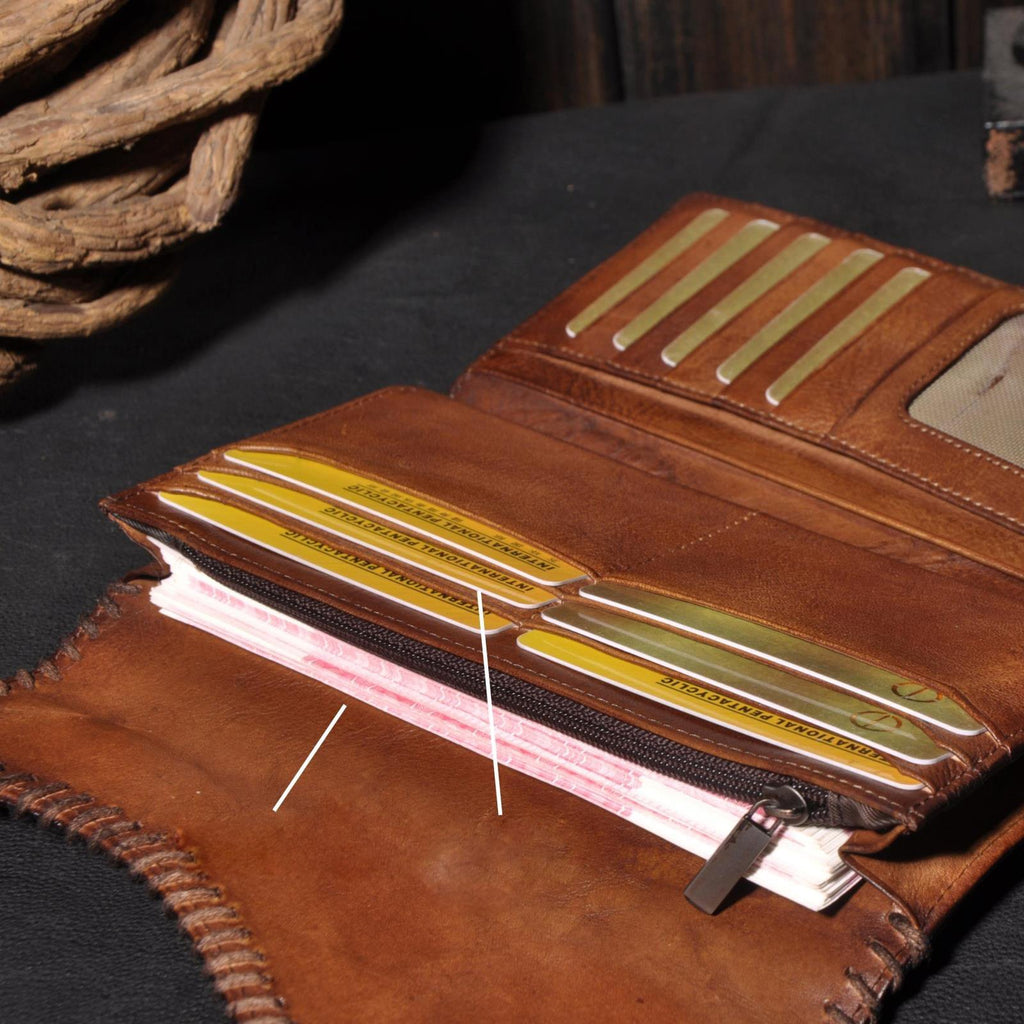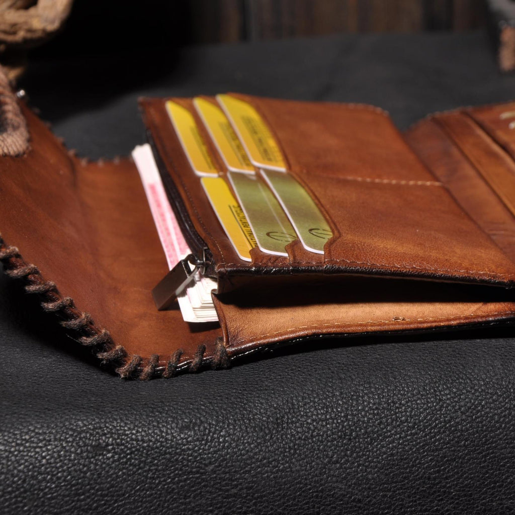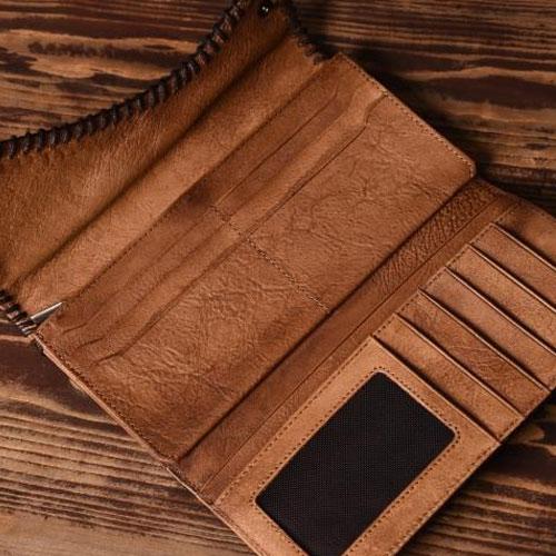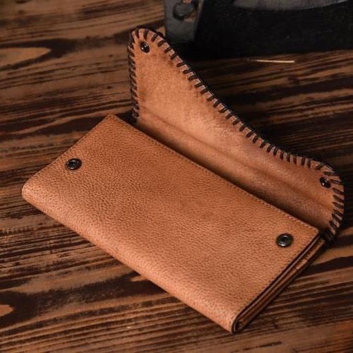 Handmade Leather Mens Cool Long Leather Wallet Trifold Clutch Wallet for Men