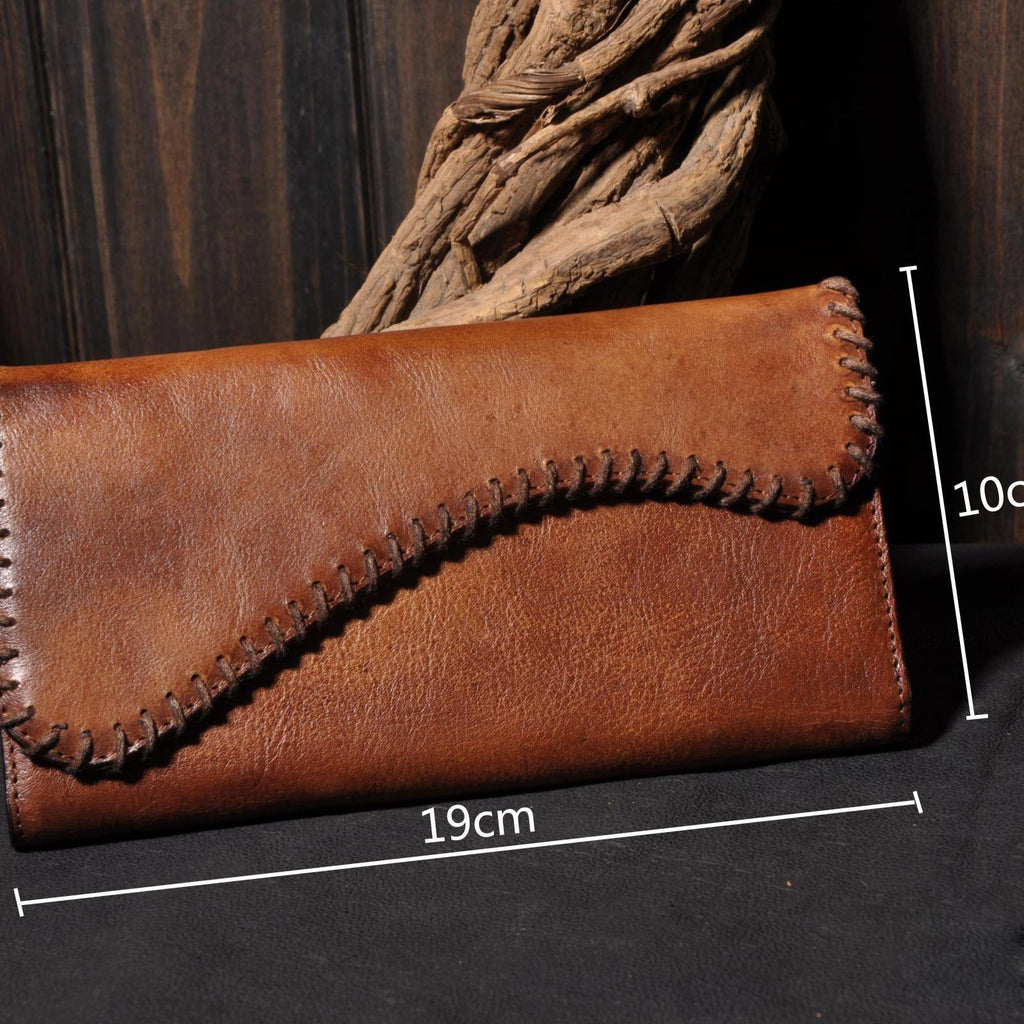 Style: Handmade Leather Mens Cool Long Leather Wallet Trifold Clutch Wallet for Men