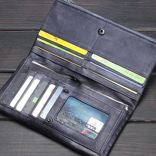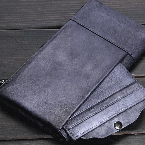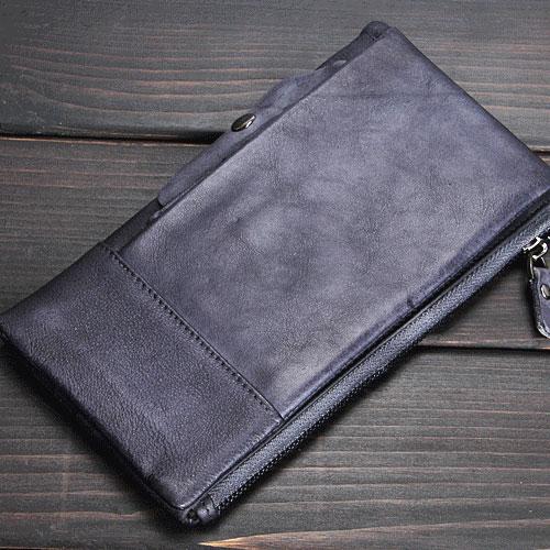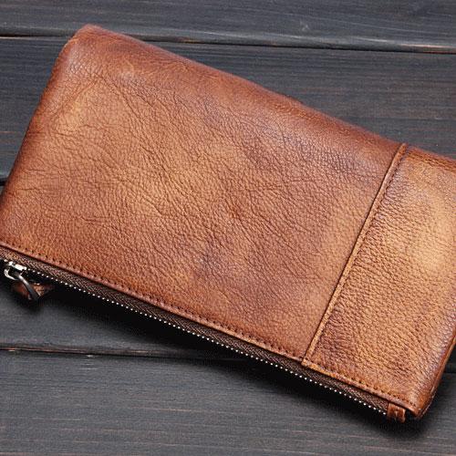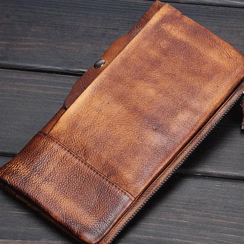 Design: Handmade Leather Mens Cool Long Leather Wallet Wristlet Clutch Wallet for Men