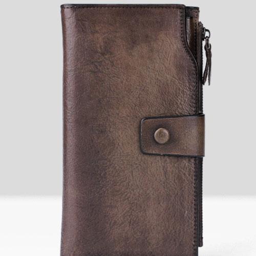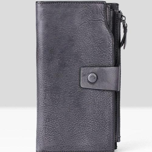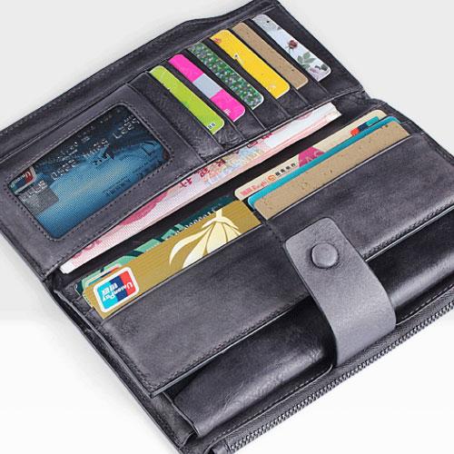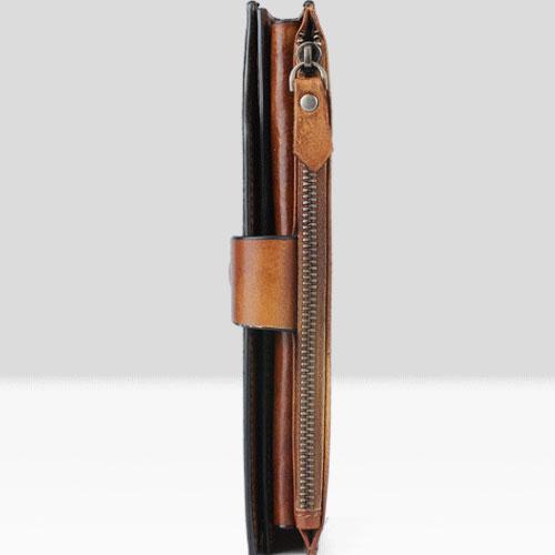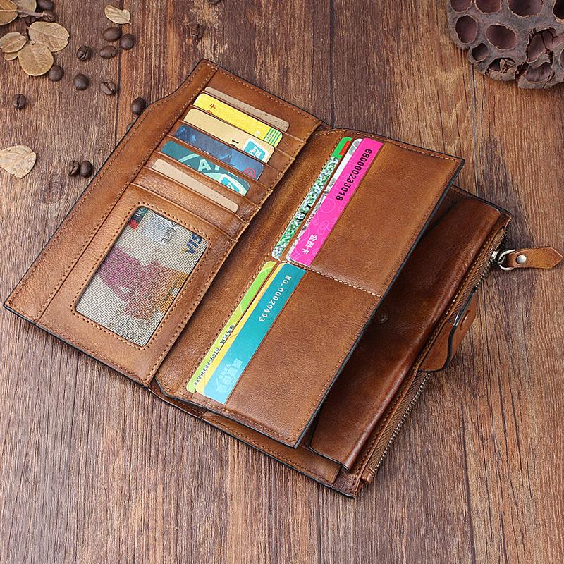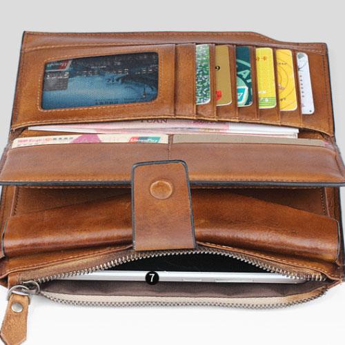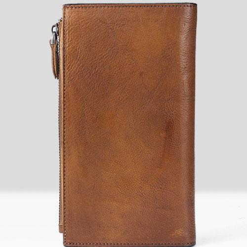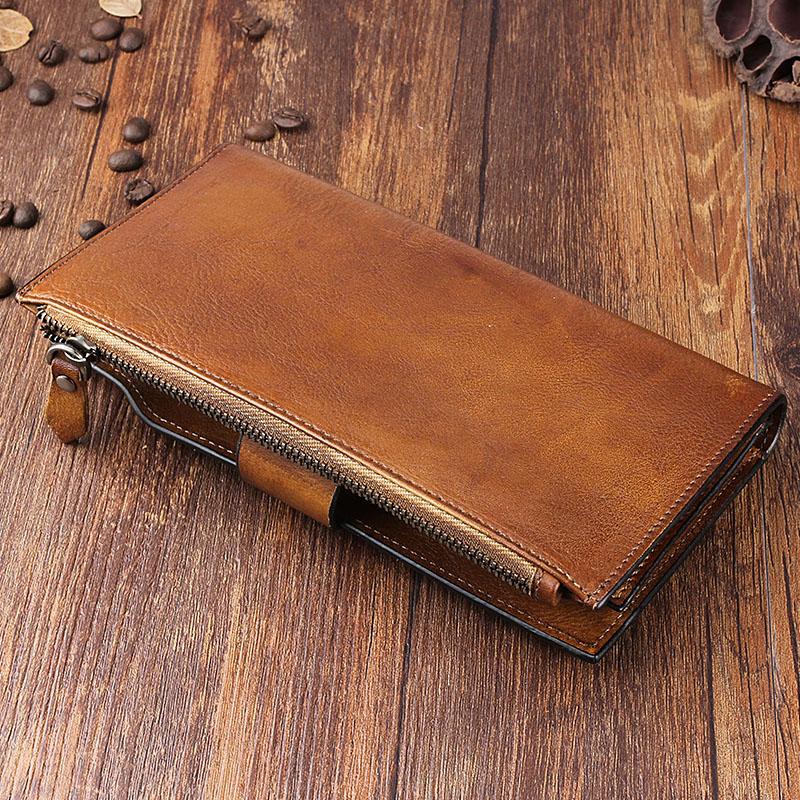 Design: Handmade Leather Mens Cool Long Leather Wallet Wristlet Clutch Wallet for Men