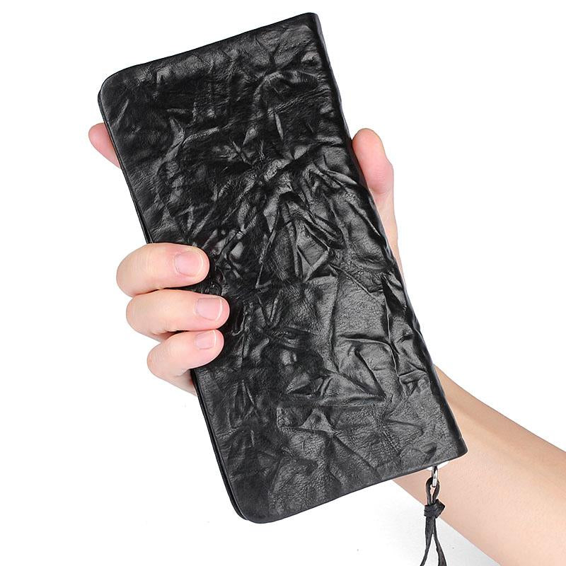 Design: Handmade Leather Mens Cool Long Leather Wallet Zipper Clutch Wallet for Men
