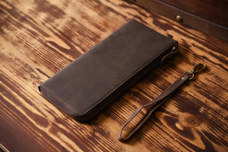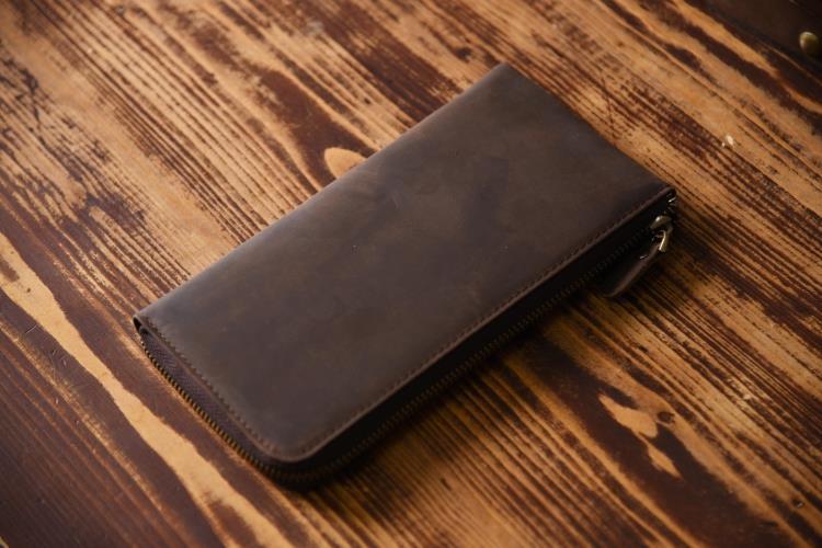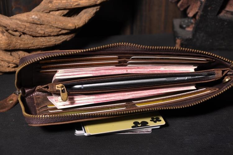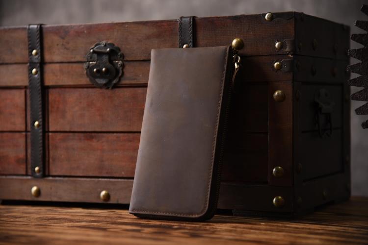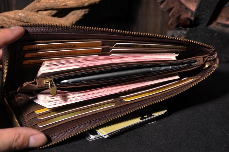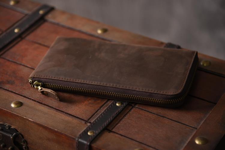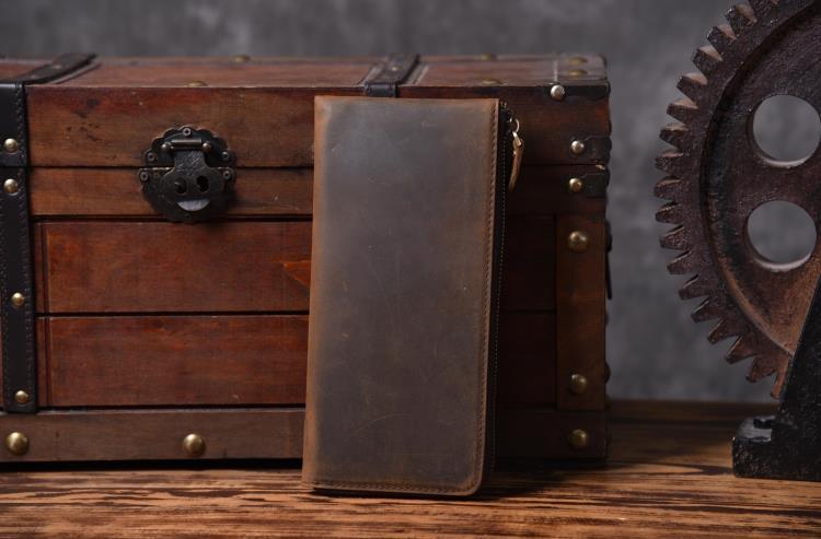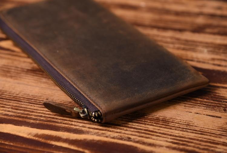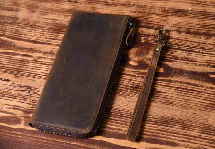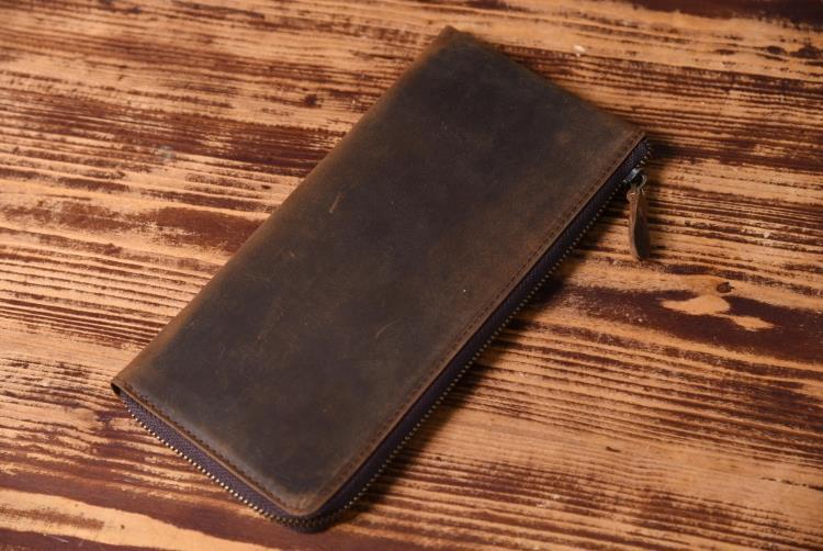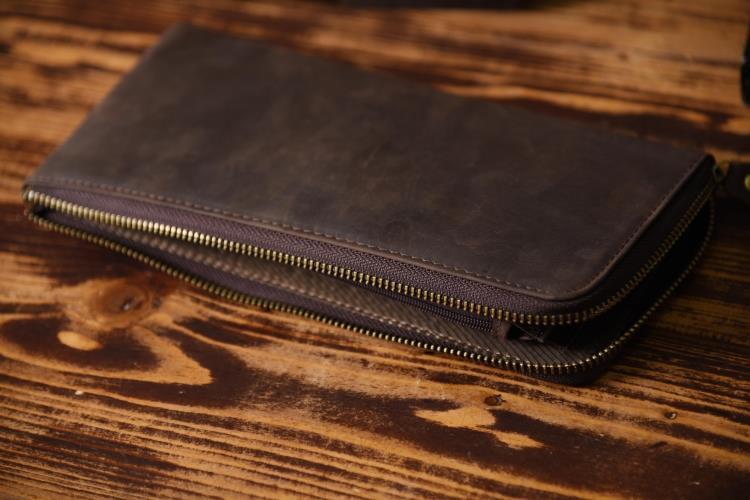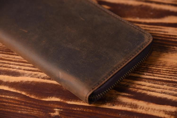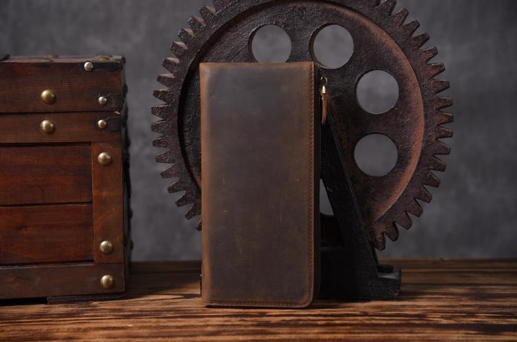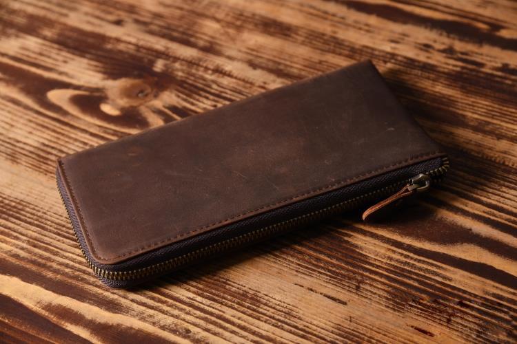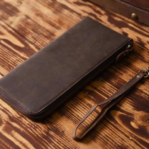 Design: Handmade Leather Mens Cool Long Leather Wallet Zipper Clutch Wallet for Men