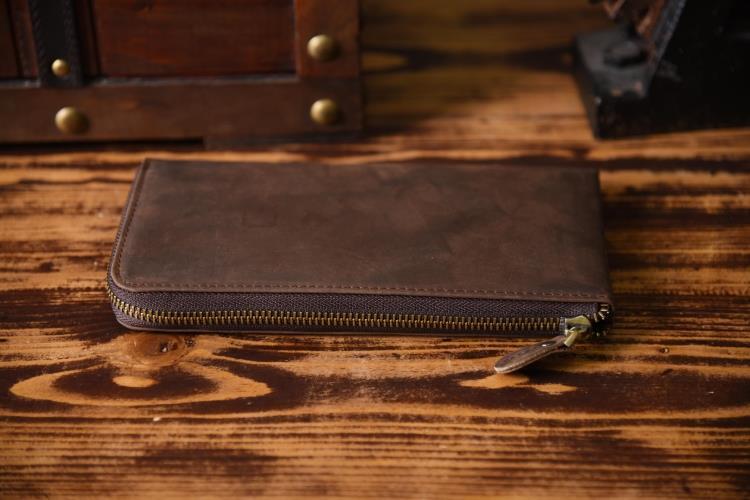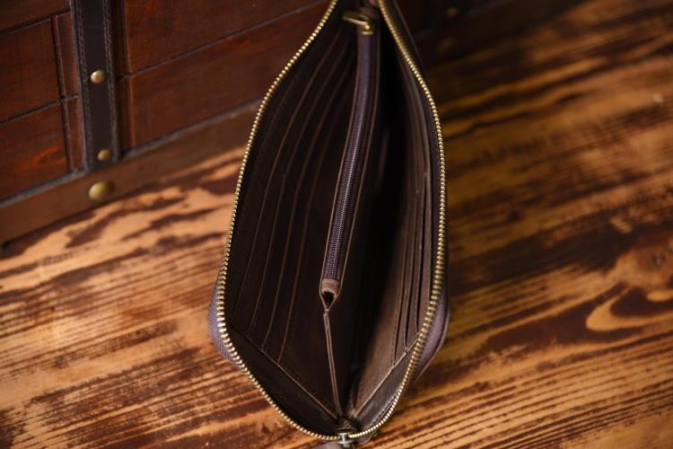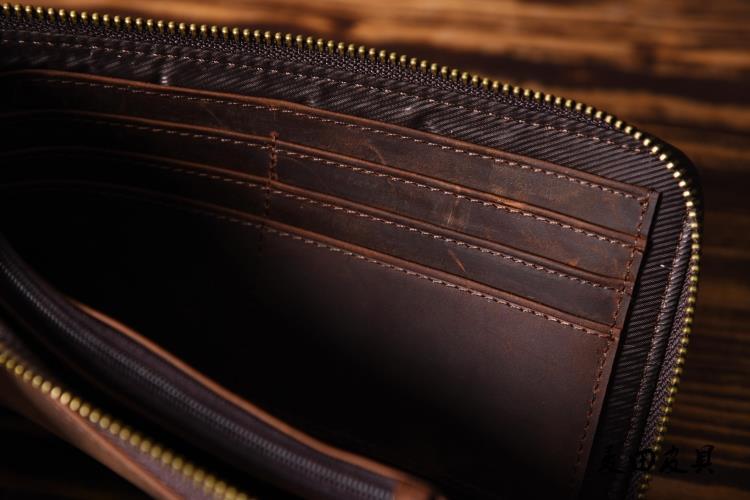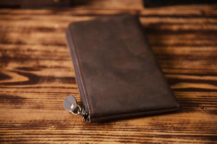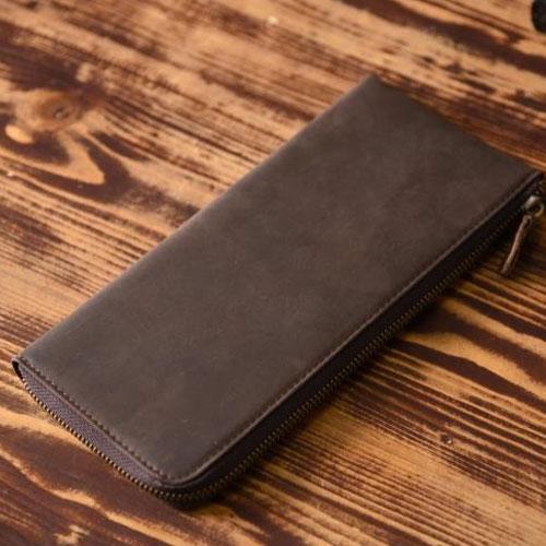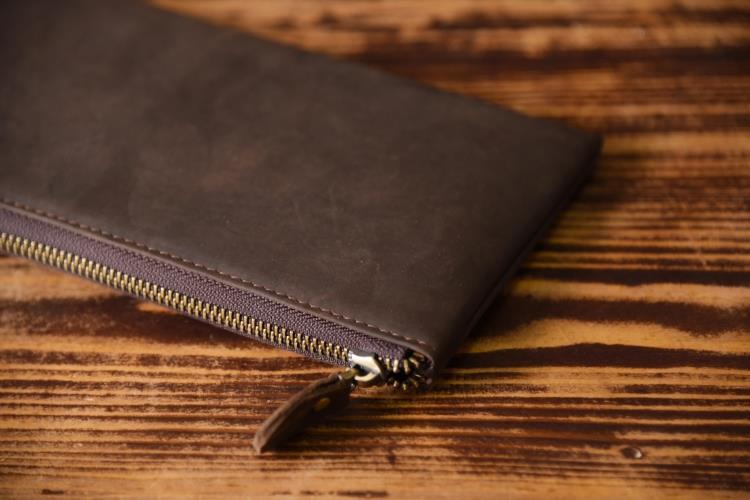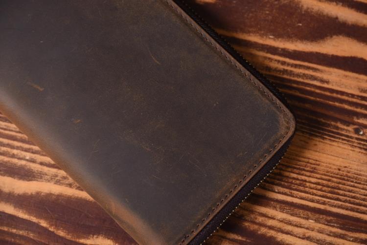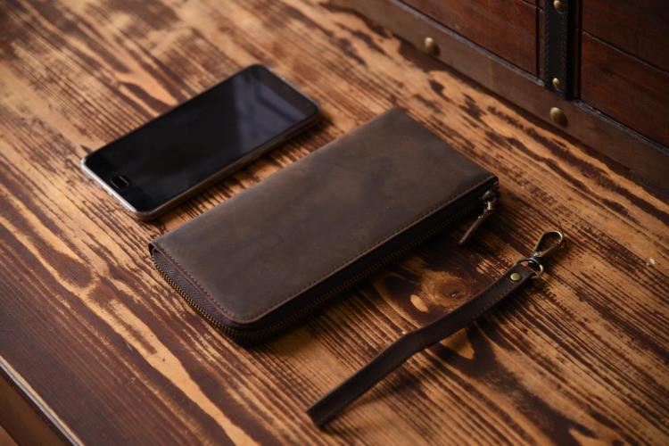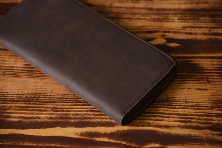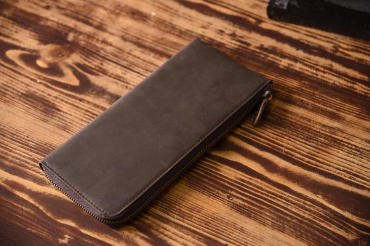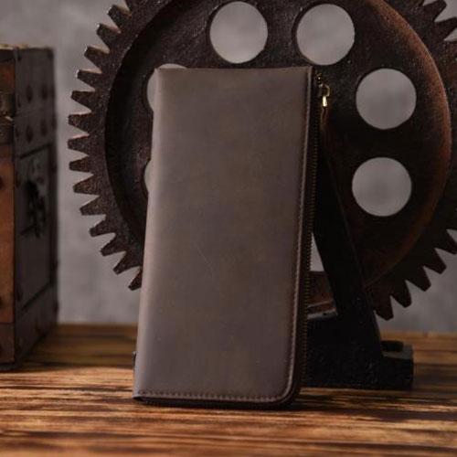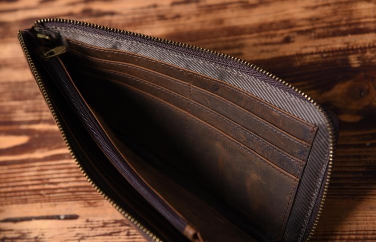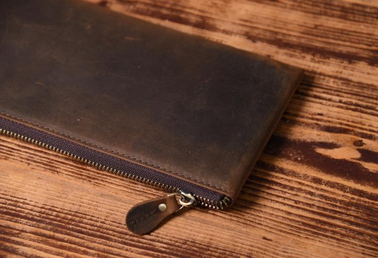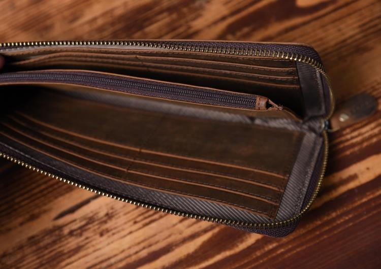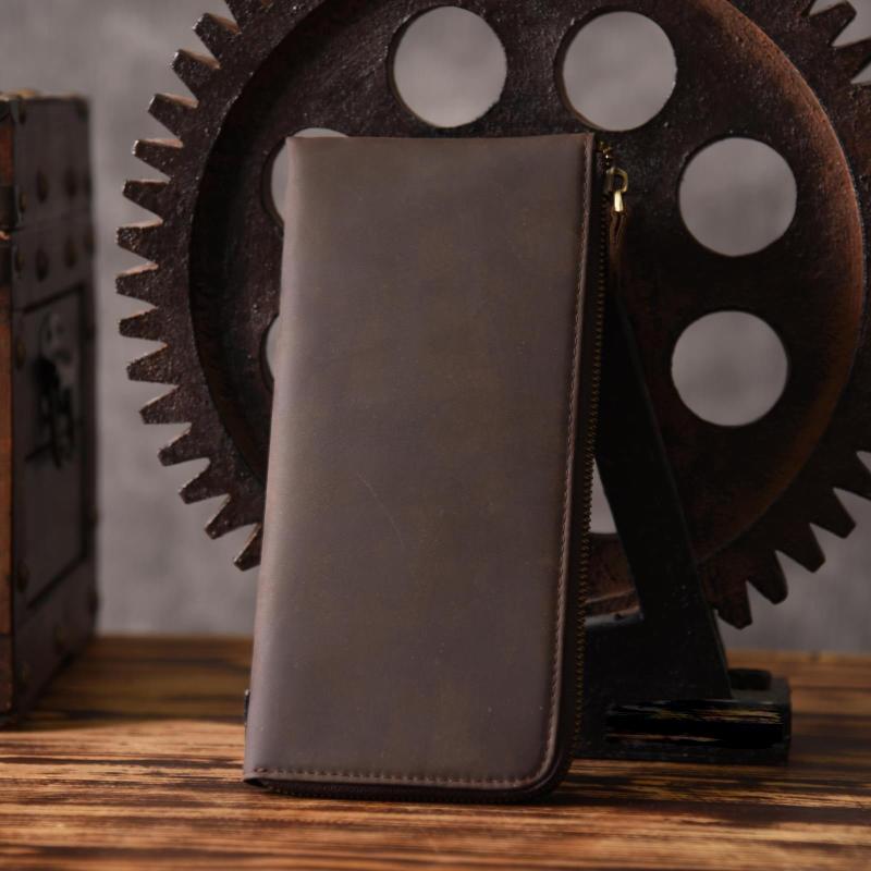 Design: Handmade Leather Mens Cool Long Leather Wallet Zipper Clutch Wallet for Men
