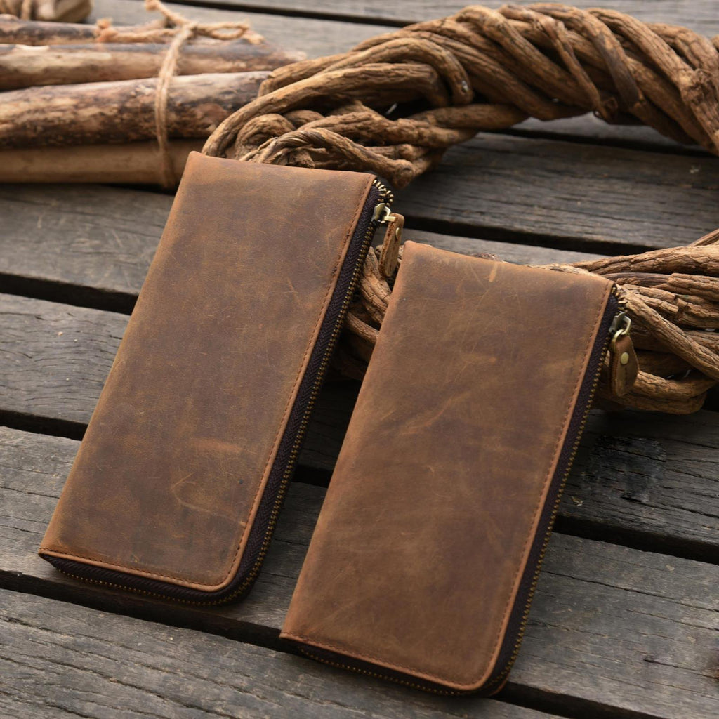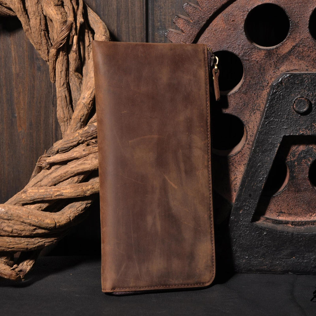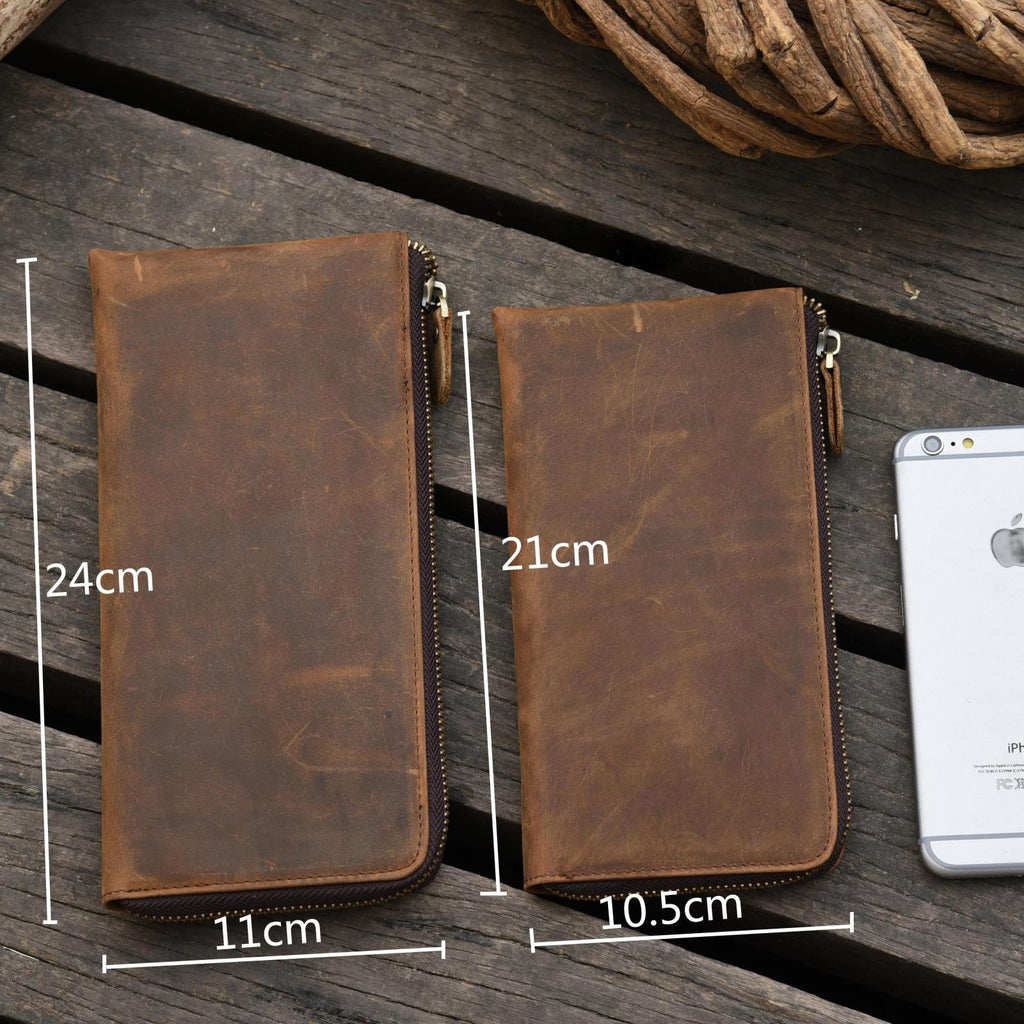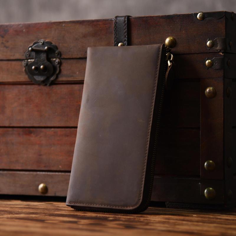Handmade Leather Mens Cool Long Leather Wallet Zipper Clutch Wallet for Men