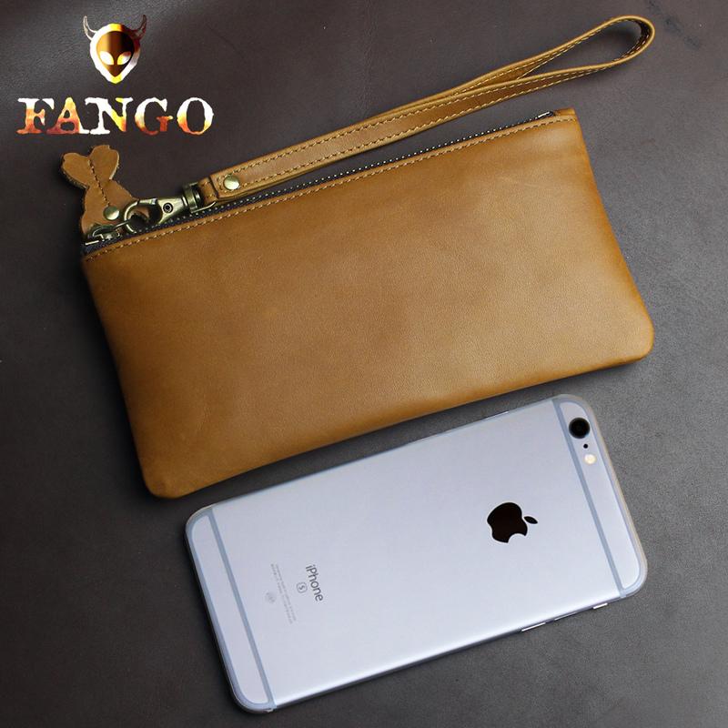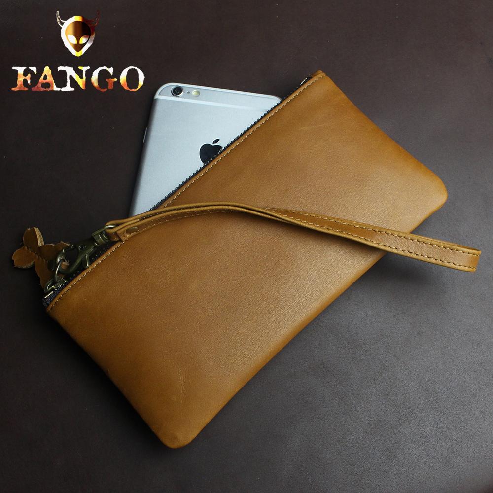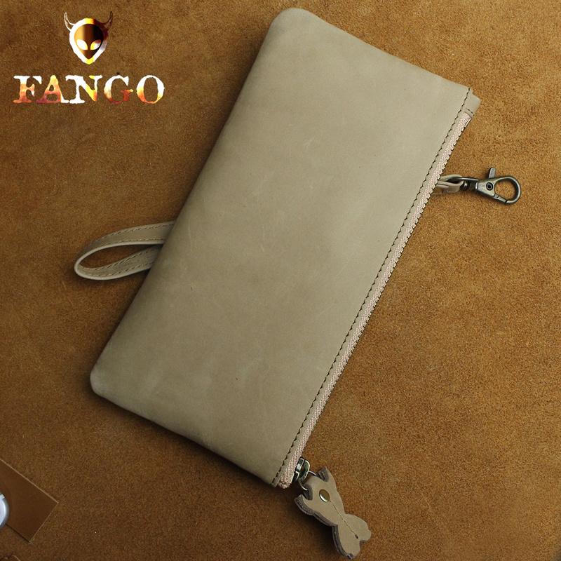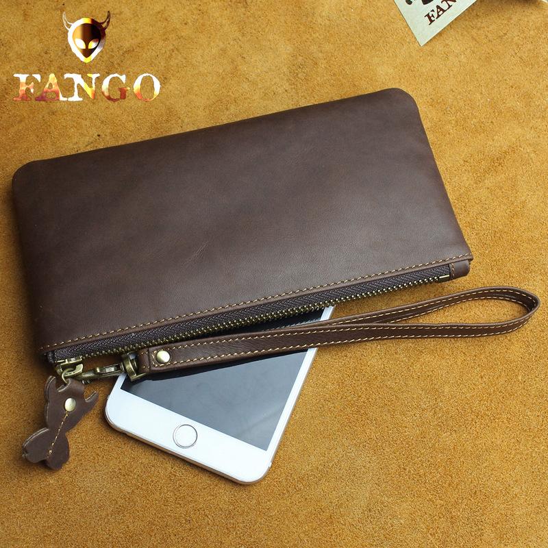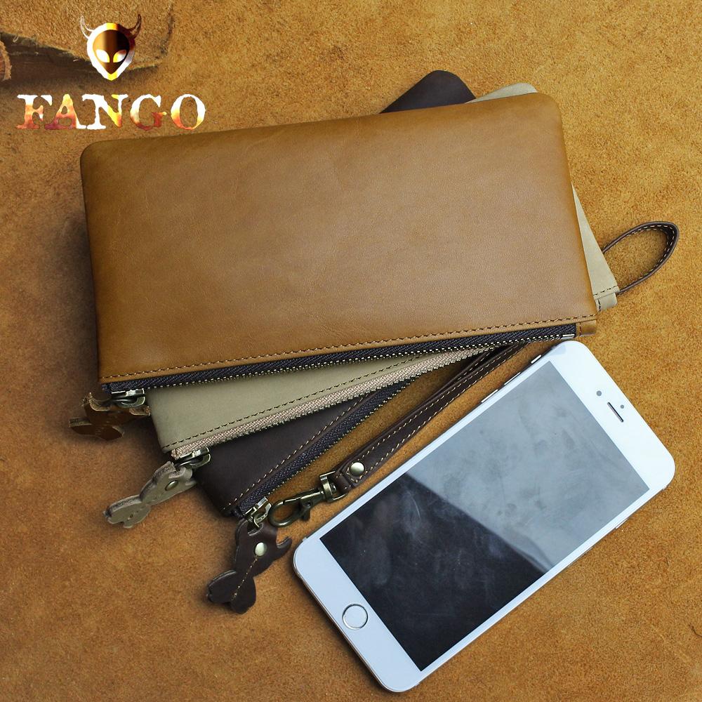 Handmade Leather Mens Cool Zipper Phone Travel Long Wallet Card Holder Card Slim Clutch Wallets for Men