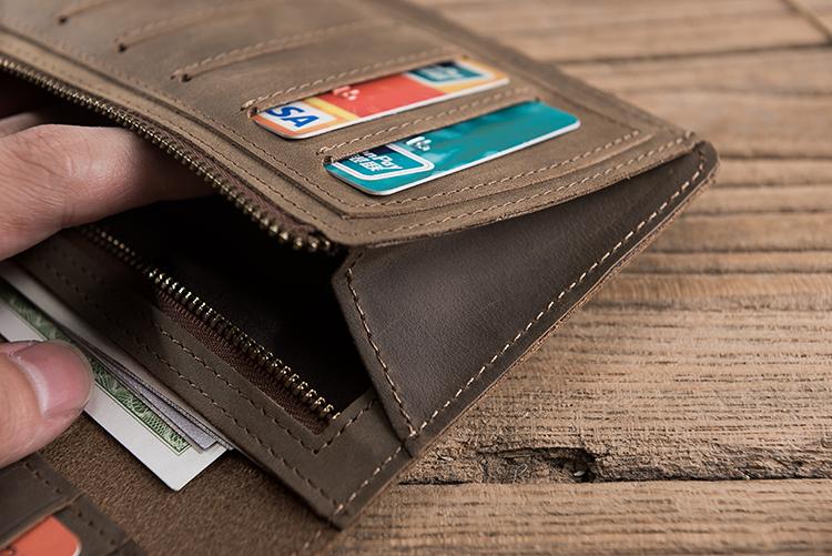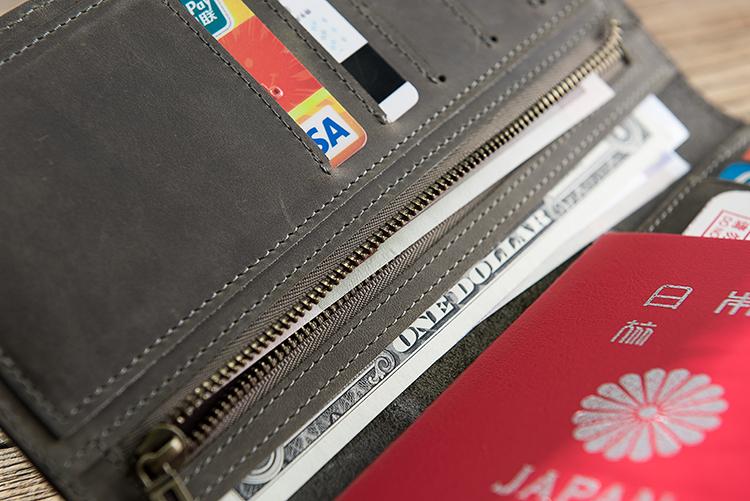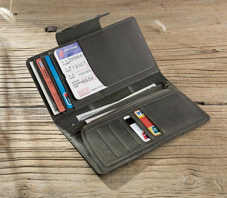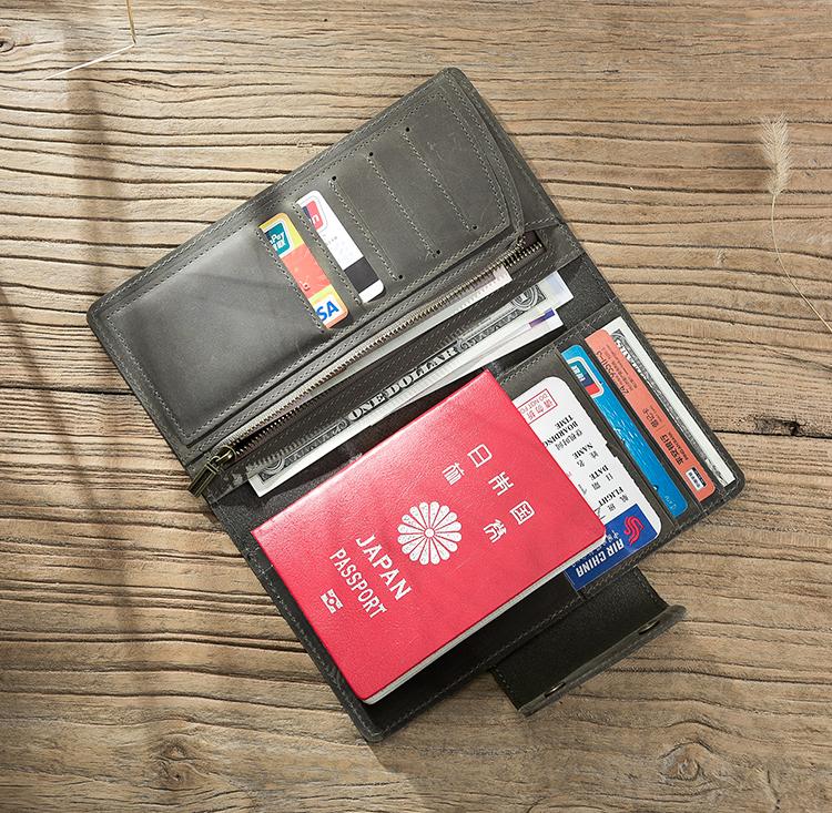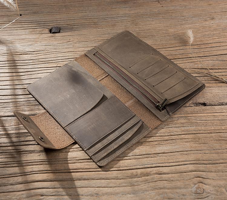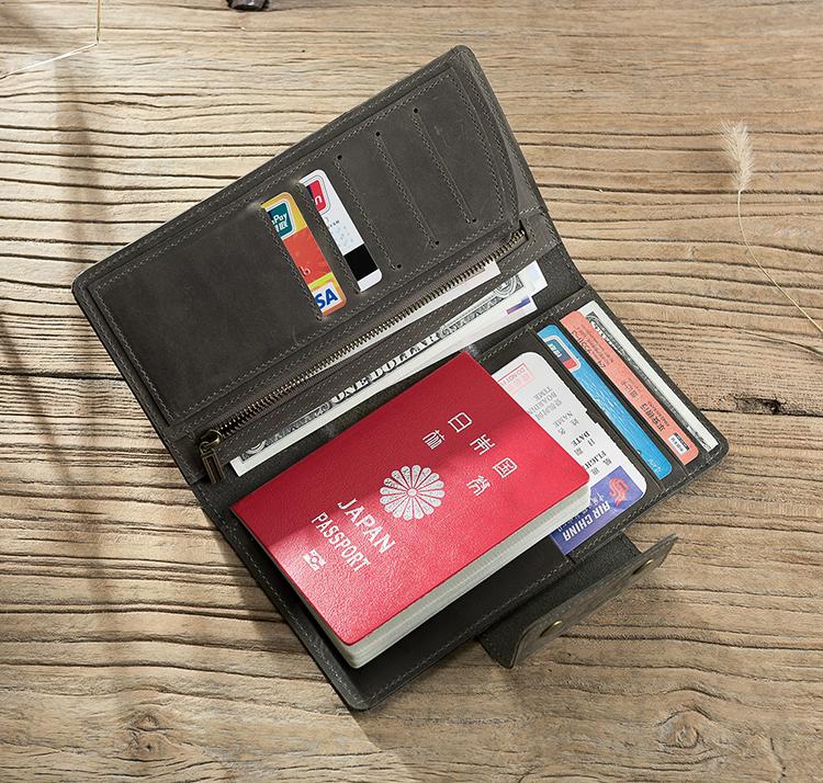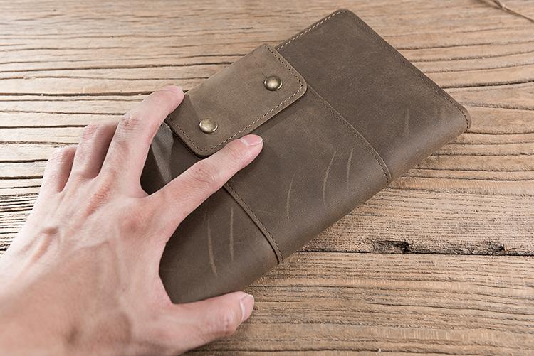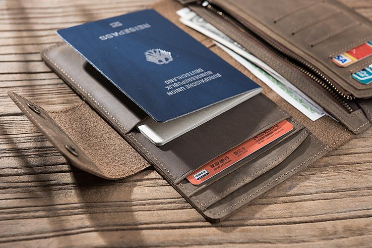 Design: Handmade Leather Mens Travel Wallet Passport Leather Wallet Long Phone Wallets for Men