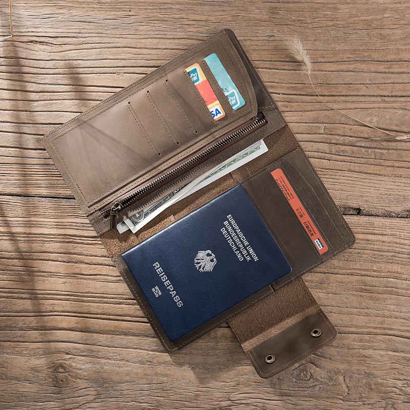 Style: Handmade Leather Mens Travel Wallet Passport Leather Wallet Long Phone Wallets for Men