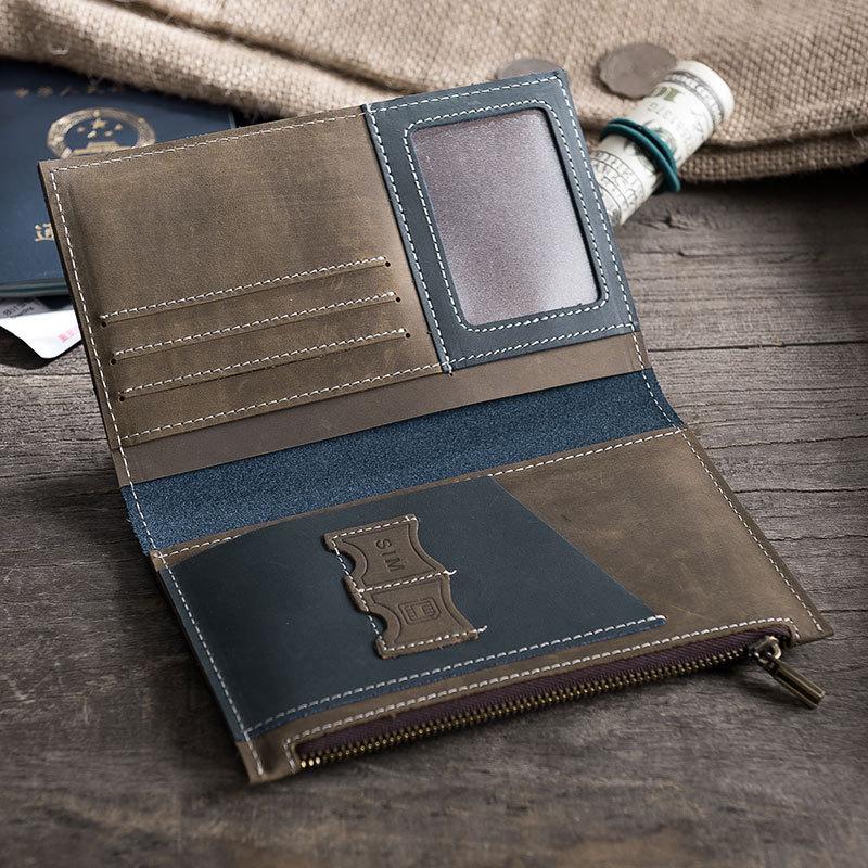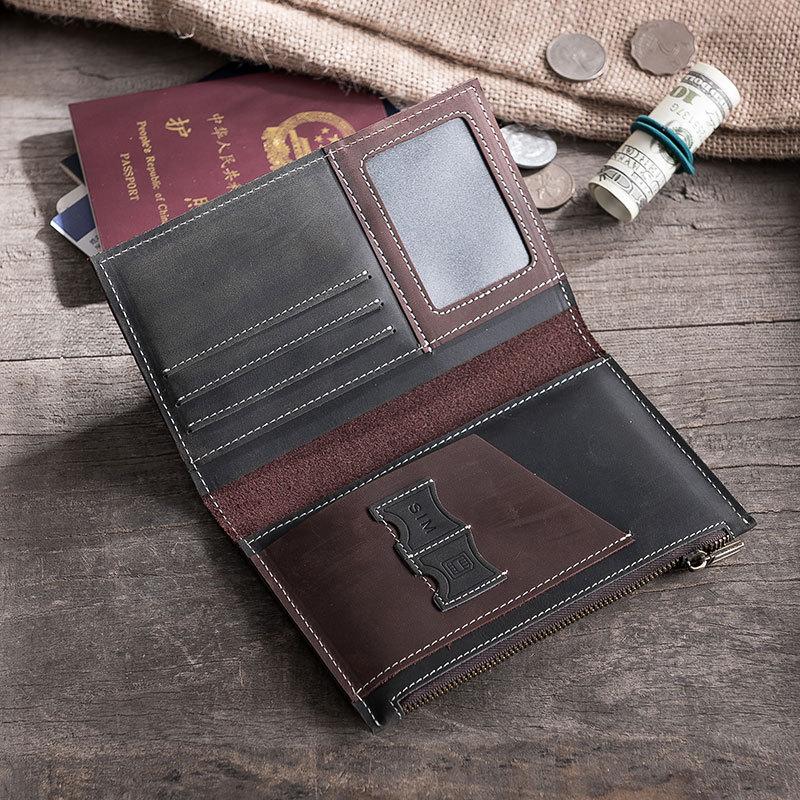 Design: Handmade Leather Mens Travel Wallet Passport Leather Wallet Short Long Wallets for Men