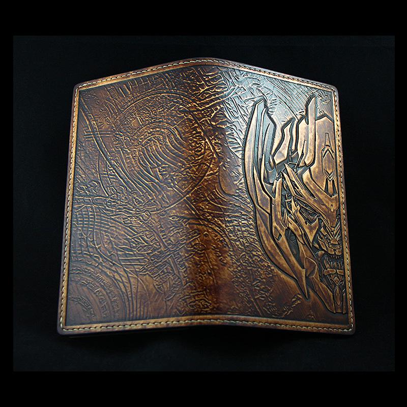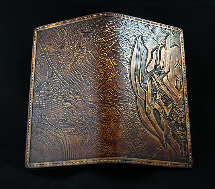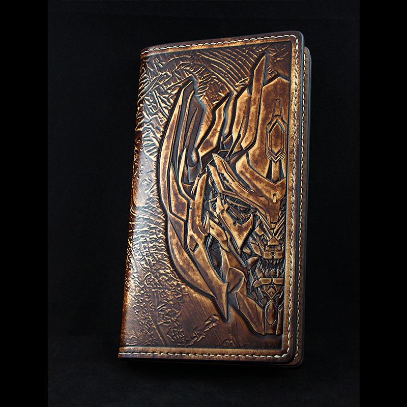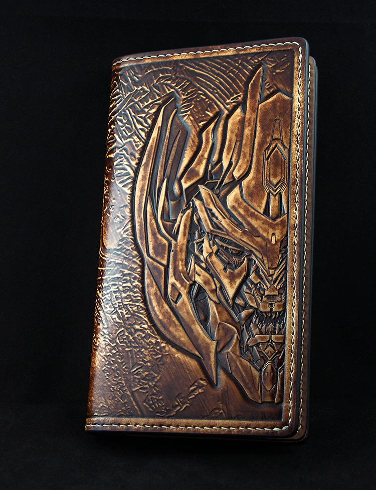 Design: Handmade Leather Tooled Transformers Megatron Mens Long Wallet Cool Leather Wallet Clutch Wallet for Men