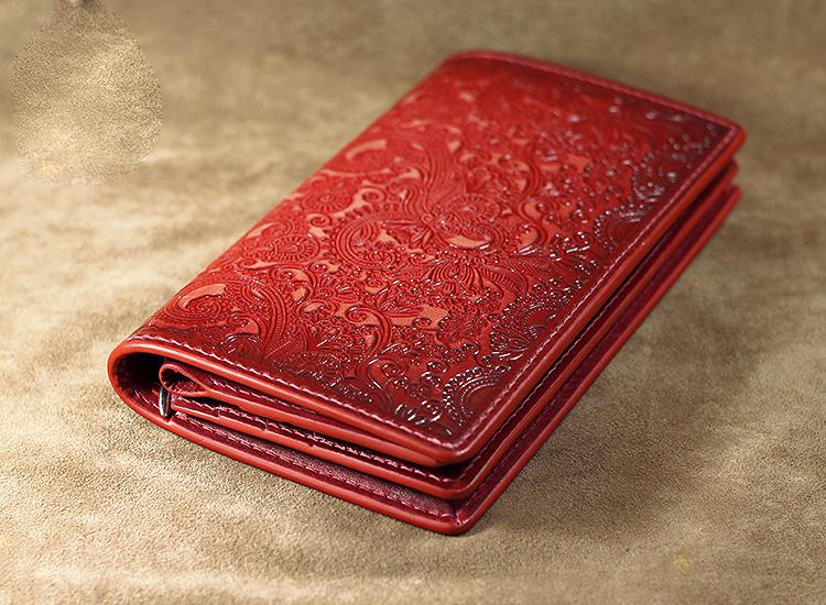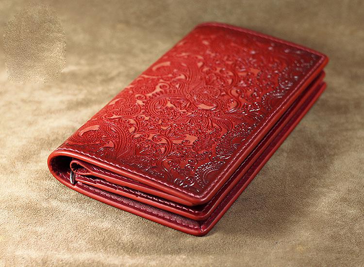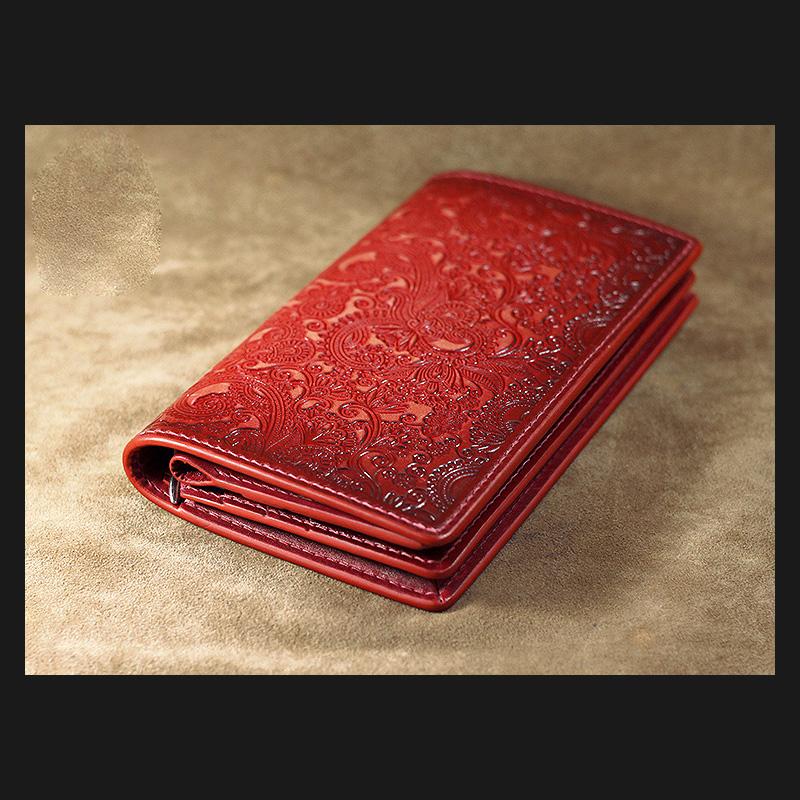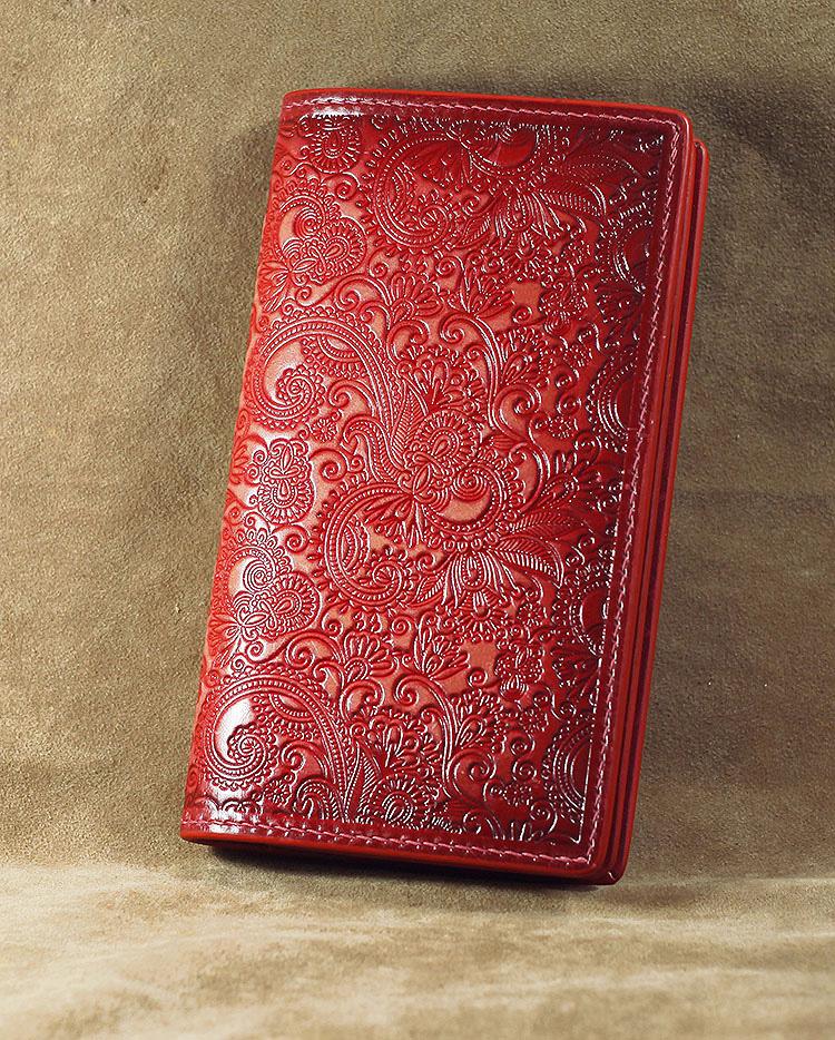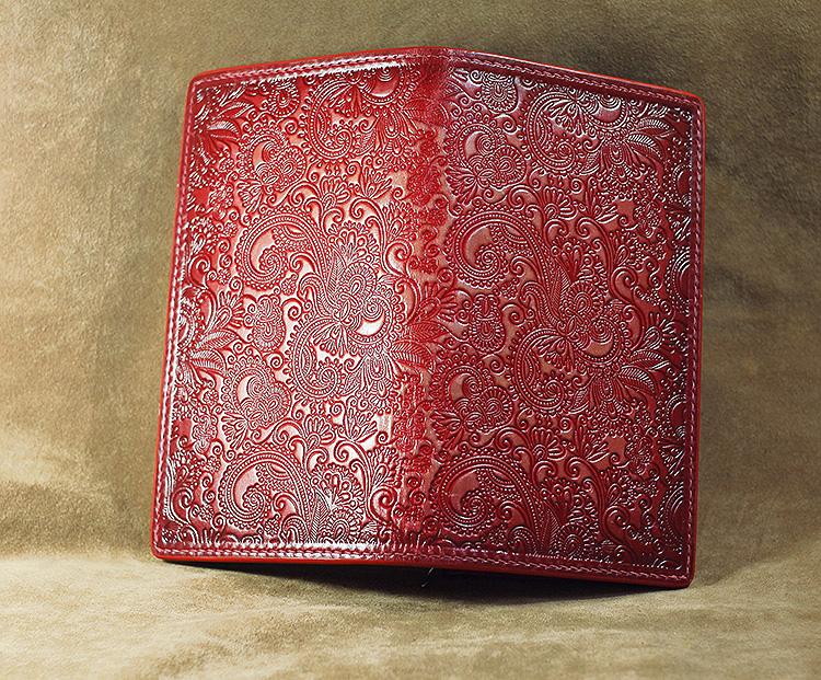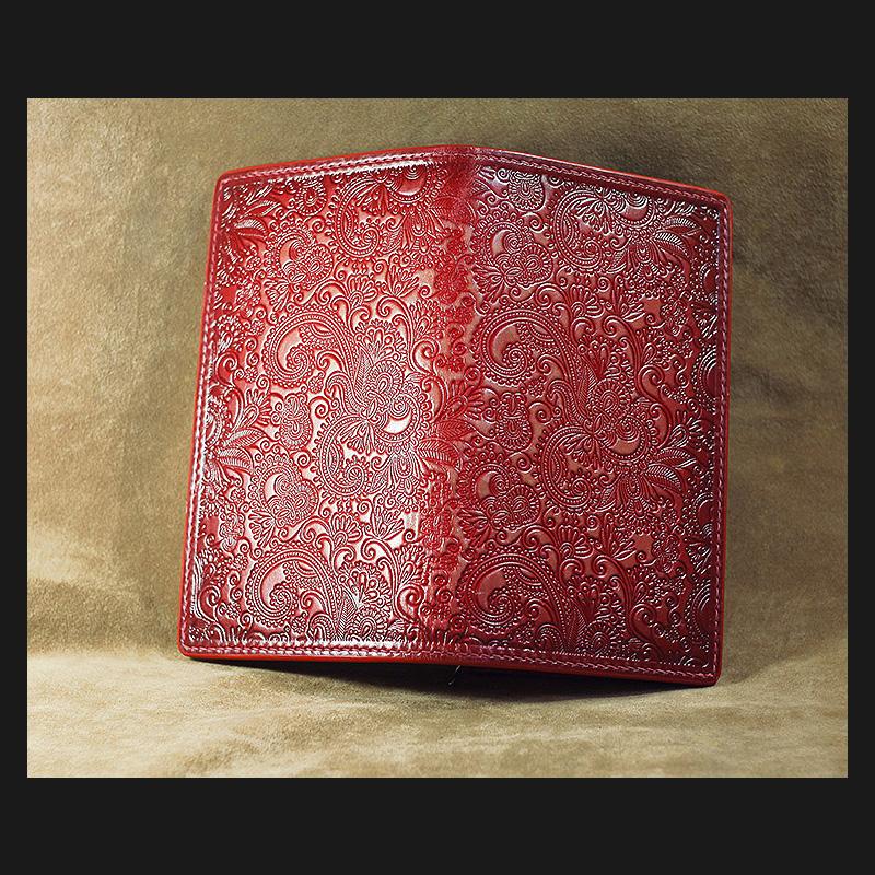 Design: Handmade Leather Tooled Trifold Henna Floral Mens Long Wallet Cool Leather Wallet Clutch Wallet for Men