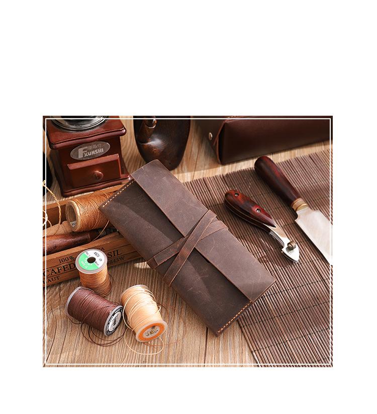 Design: Handmade Coffee Leather Womens Long Wallets Personalized Wrap Tie Checkbook Wallet for Men