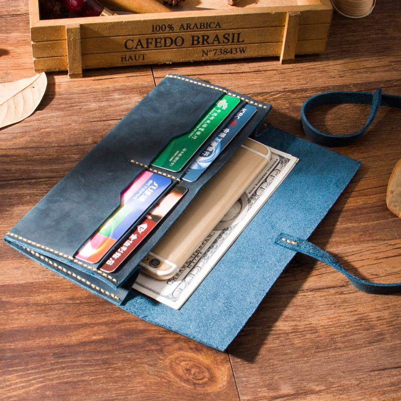 Handmade Leather Womens Long Wallets Personalized Wrap Tie Checkbook Wallet for Men