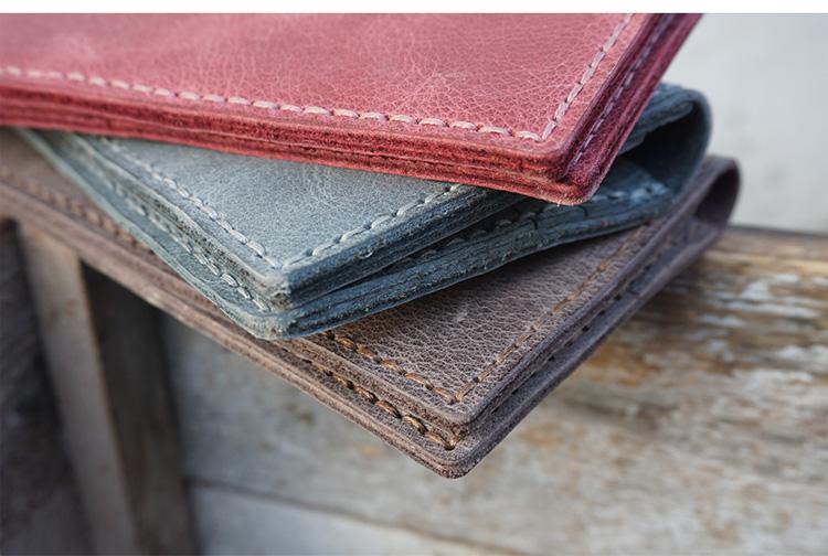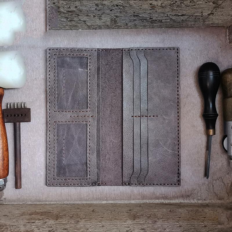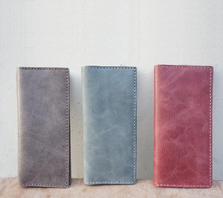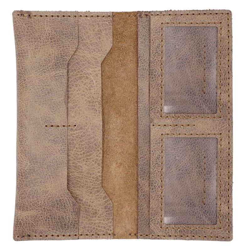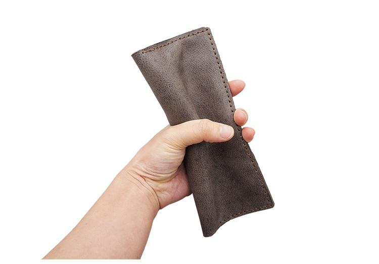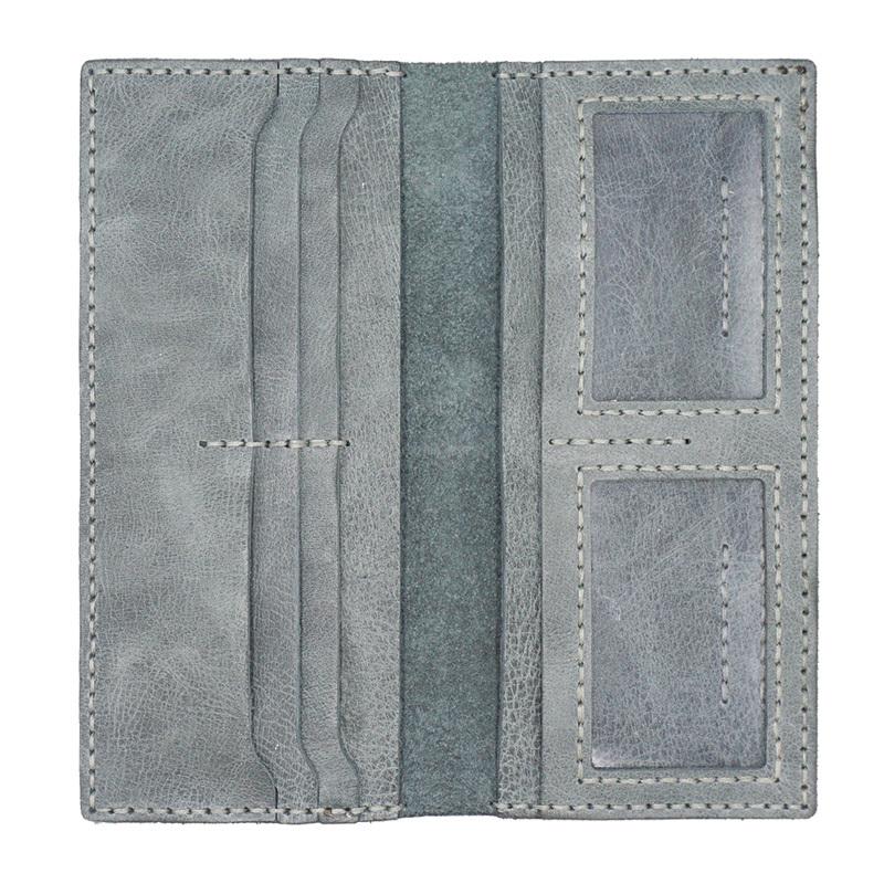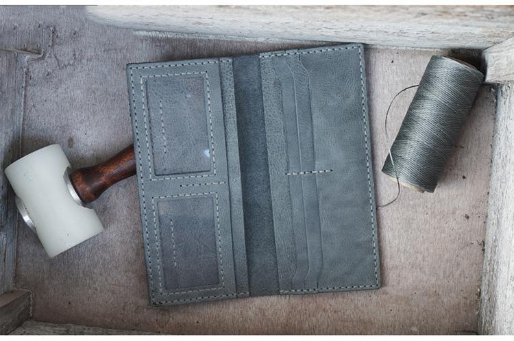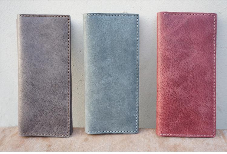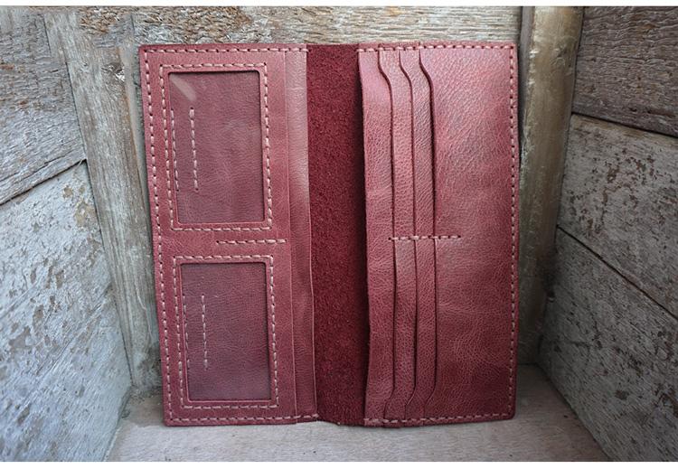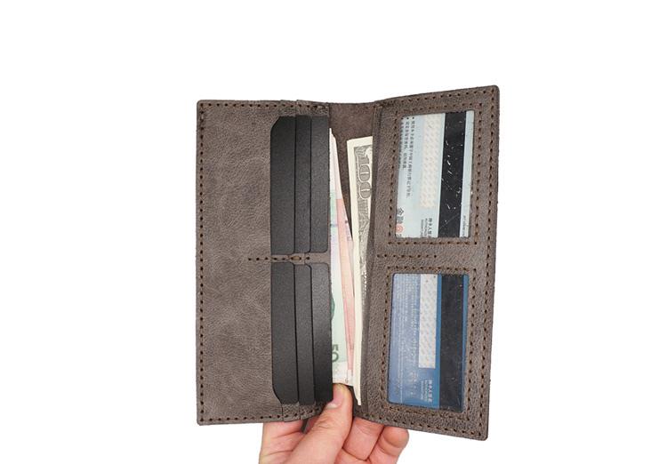 Design: Handmade Slim Checkbook Wallet Leather Mens Bifold Long Wallet Lots Cards Long Wallet for Men