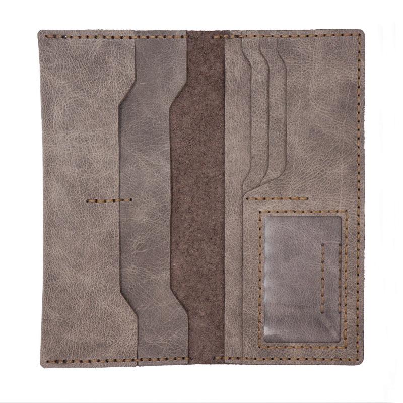 Design: Handmade Slim Checkbook Wallet Leather Mens Bifold Long Wallet Lots Cards Long Wallet for Men