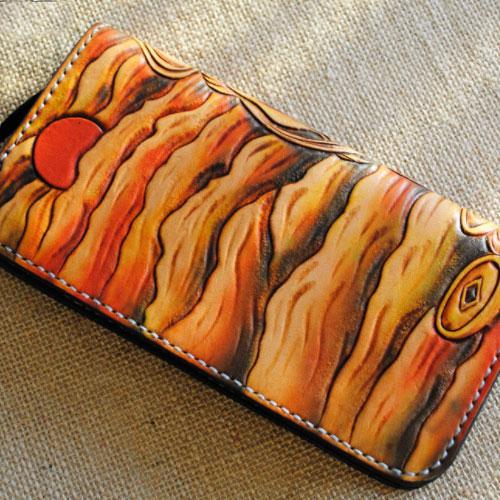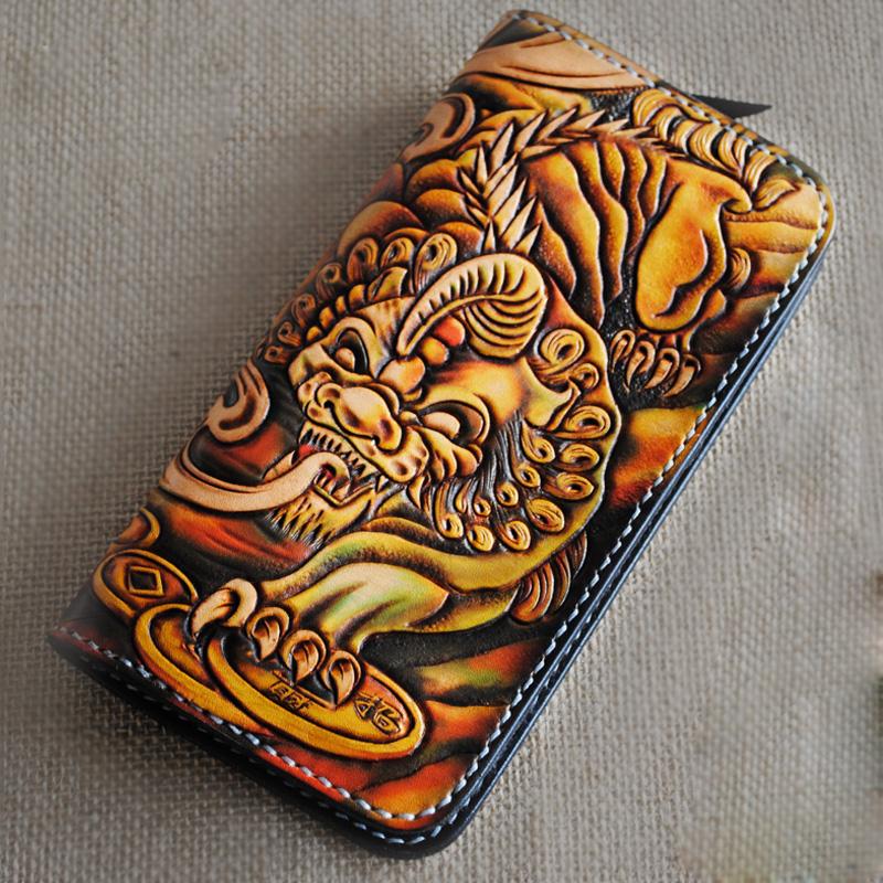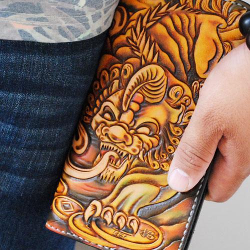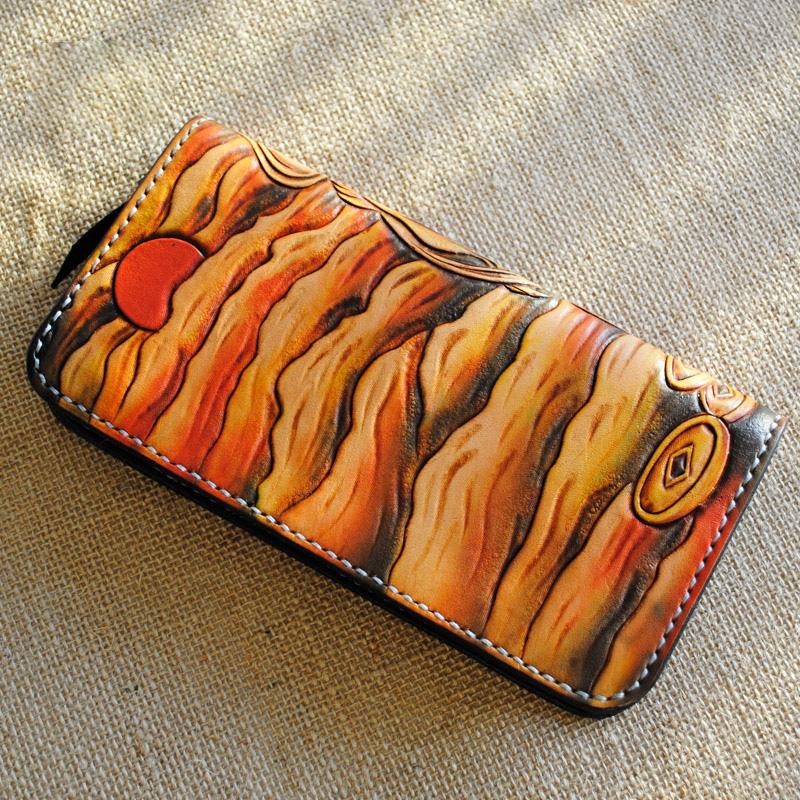 Design: Handmade Tooled Brave Troops Leather Mens Cool Long Leather Wallet Zipper Clutch Wallet for Men