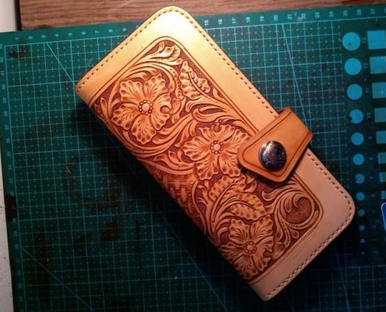 Design: Handmade Tooled Floral Mens Leather Long Wallet Cool Long Wallet for Men