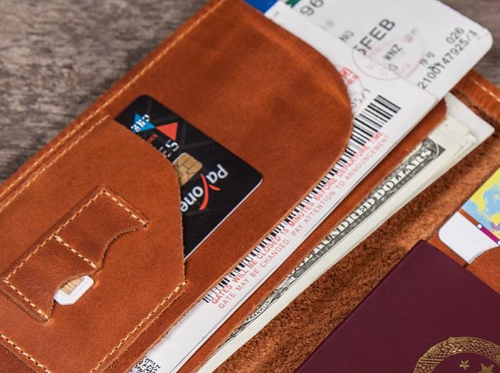 Slots: 2 full bill slots, 2 card slots, 1 passport slot, 1 boarding pass slot, 2 sim card slots