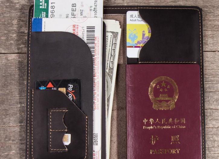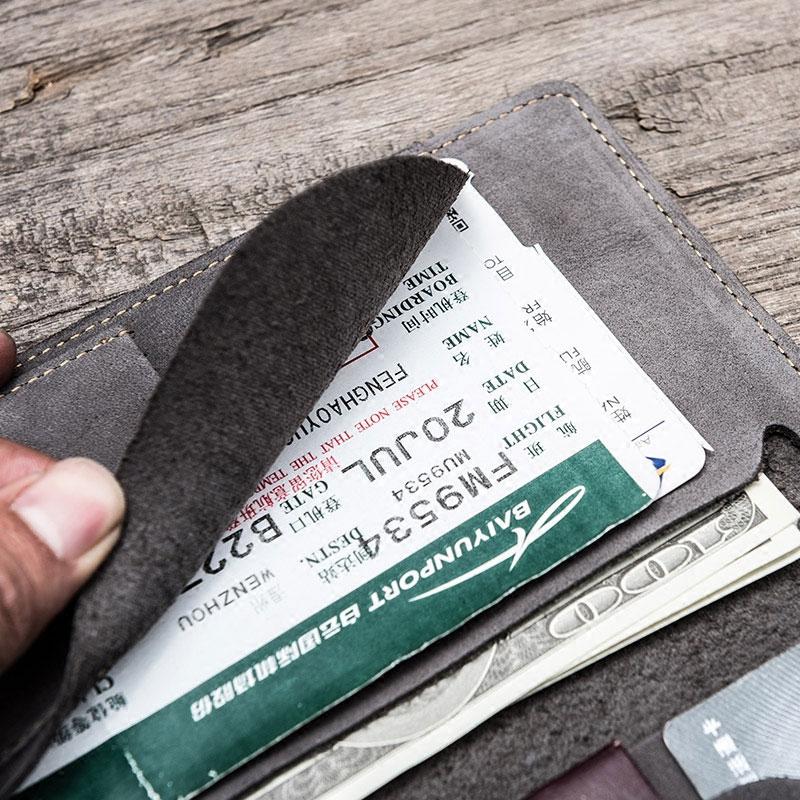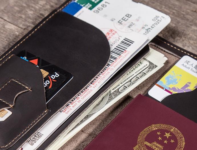 Design: Leather Men Travel Wallet Passport Wallet Bifold Long Wallets for Men