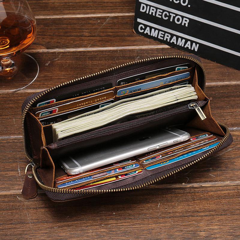 Design: Vintage Cool Mens Leather Long Wallet Clutch Wallet Phone Wallet for Men