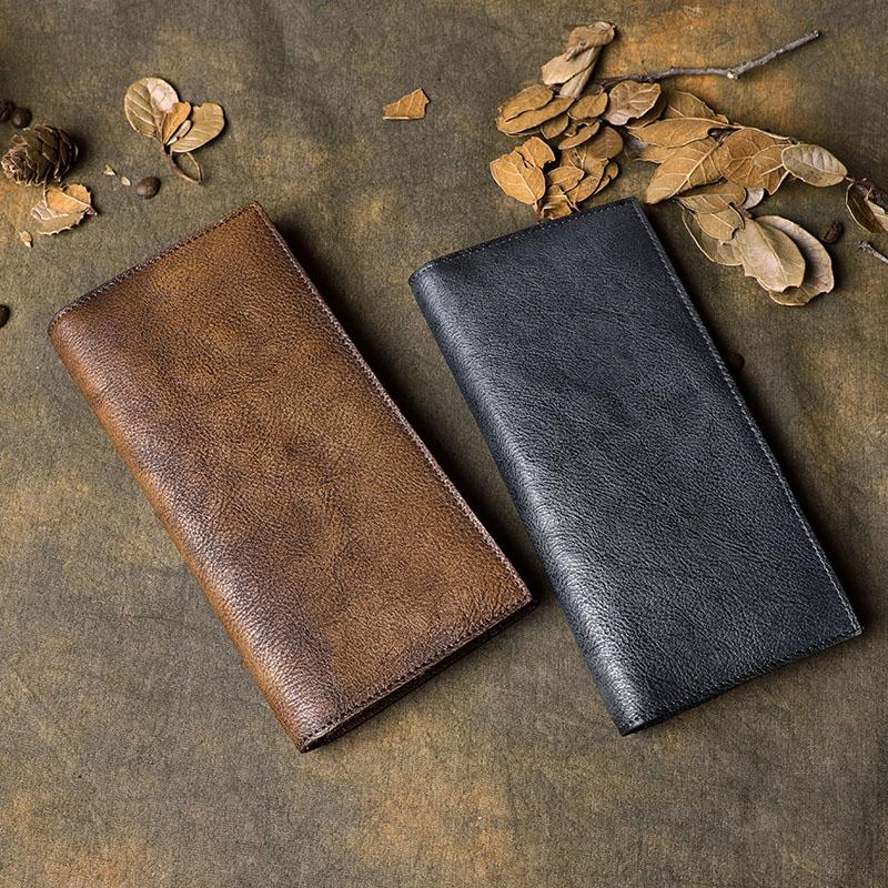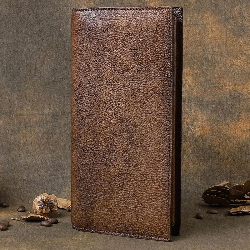 Vintage Leather Mens Brown Cool Long Wallet Long Bifold Clutch Card Wallet for Men