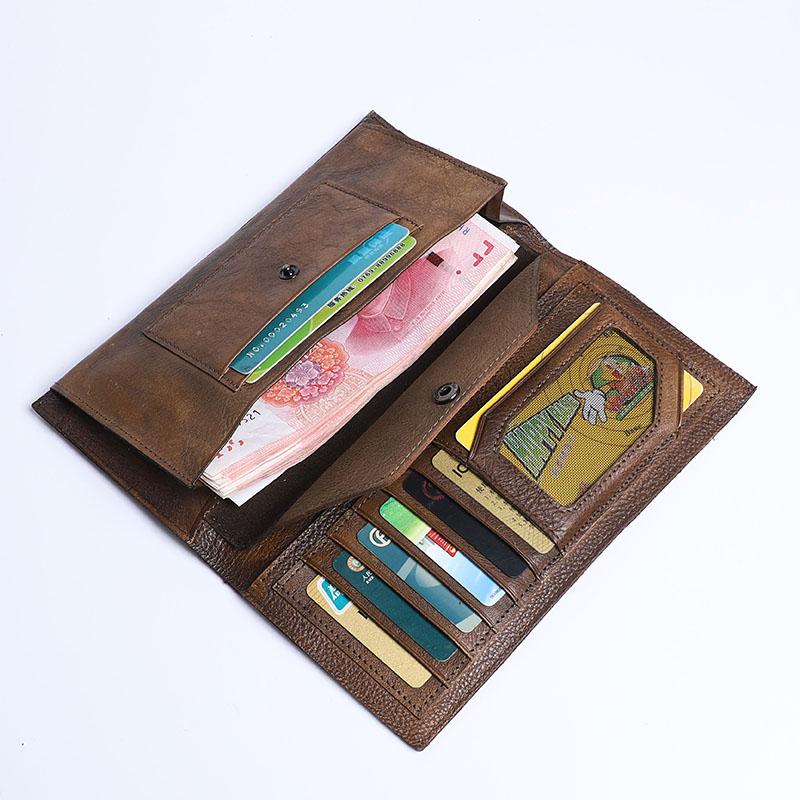 Design: Retro Leather Mens Cool Long Brown Multi-function Leather Card Wallet Bifold Clutch Wallet for Men