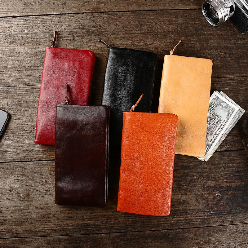 Design: Simple Light Leather Mens Black Slim Long Wallet Red Bifold Card Wallet Clutch Wallet For Men