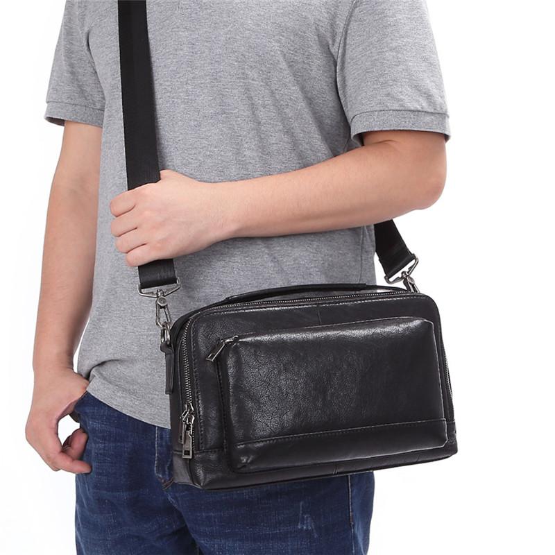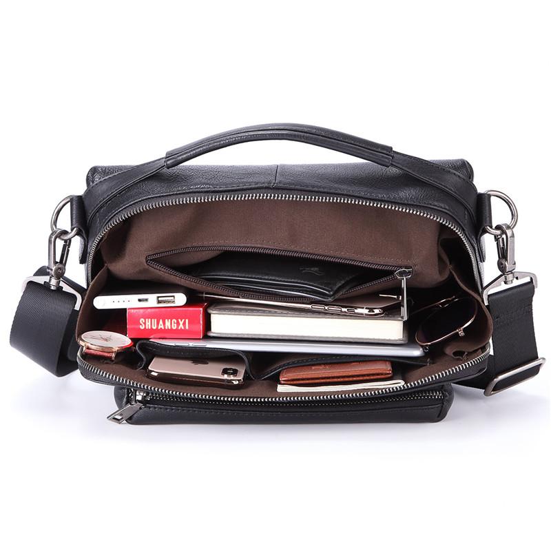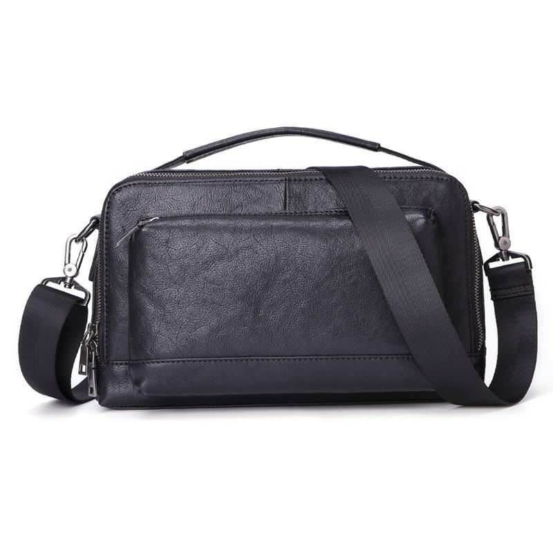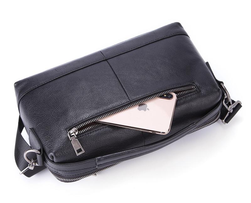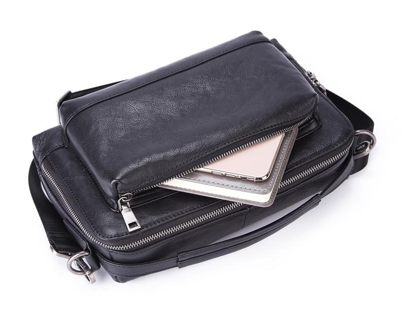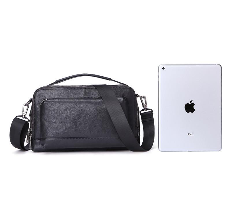 Design: BADASS Black LEATHER MENS 10-inch Diagonal Bag SHOULDER BAG SIDE BAG COURIER BAG Business MESSENGER BAG FOR MEN