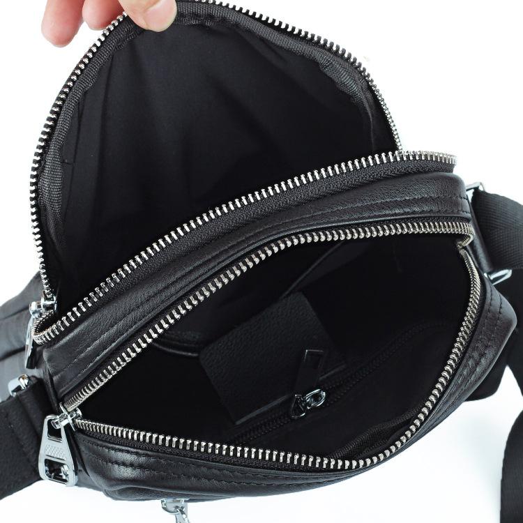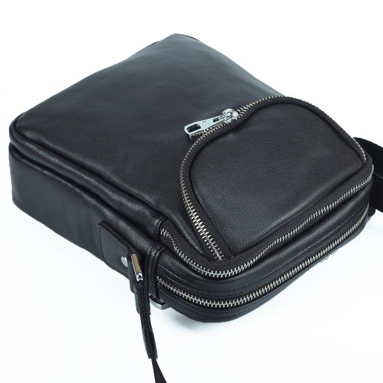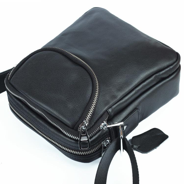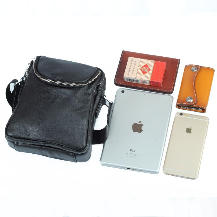 Design: BADASS Black LEATHER MENS 8-inch Phone Diagonal Bag SHOULDER BAG SIDE BAG COURIER BAG MESSENGER BAG FOR MEN
