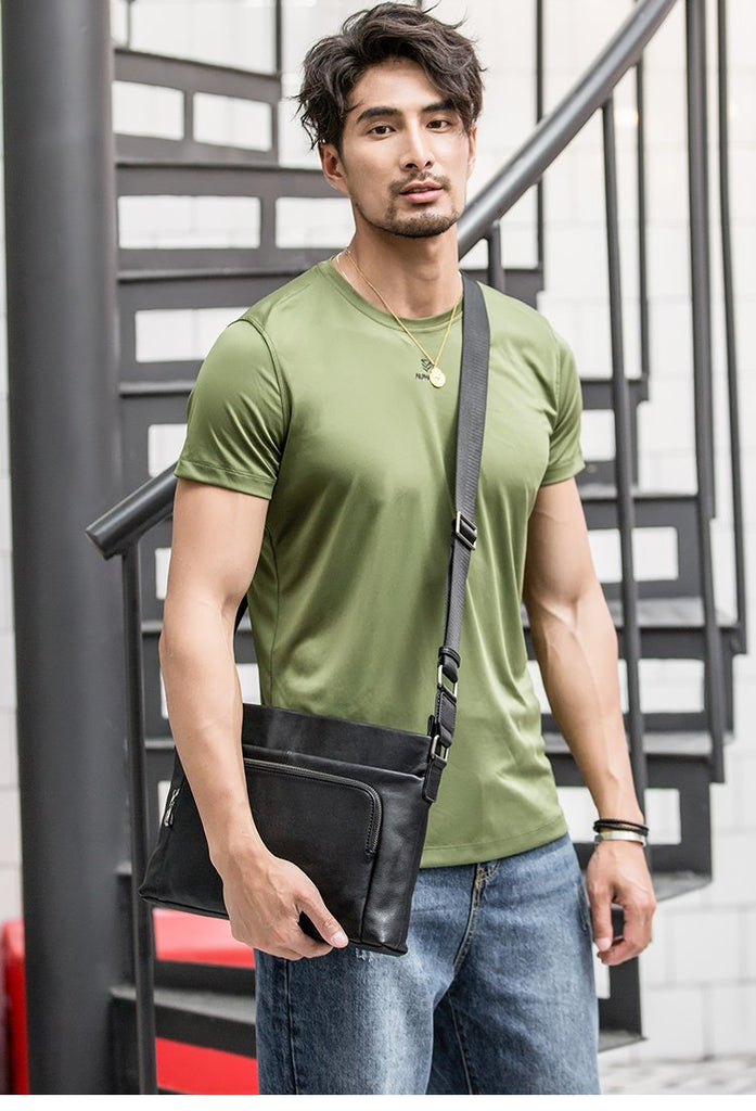 Design: Black Casual Leather Mens 10 inches Large Shoulder Bag Black Messenger Bags Soft Side Bag for Men