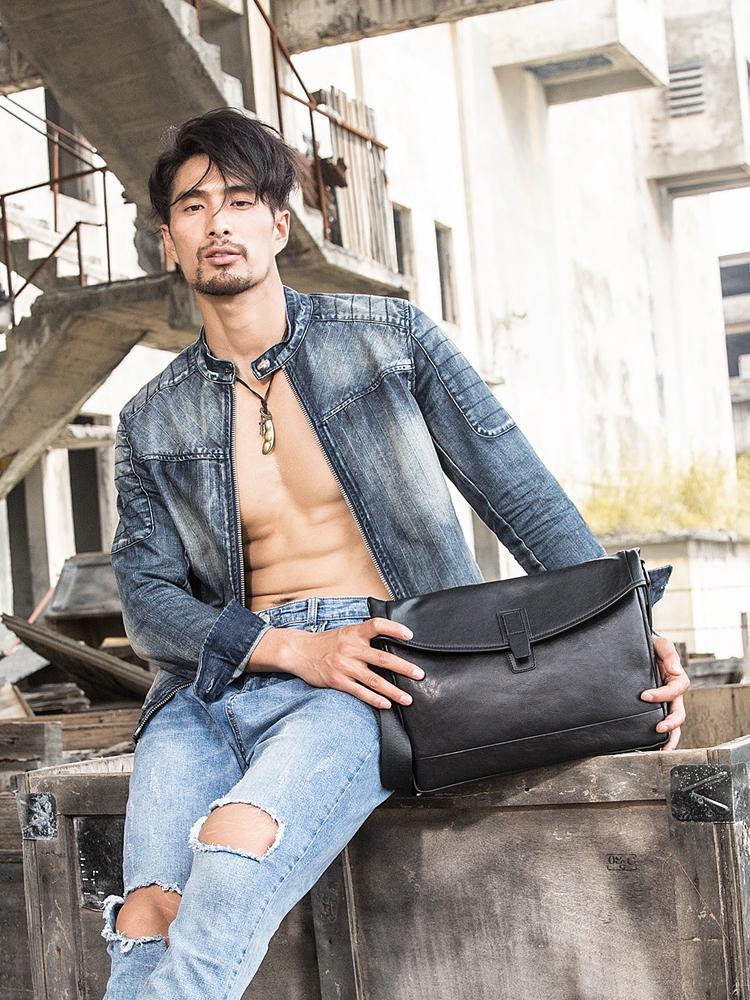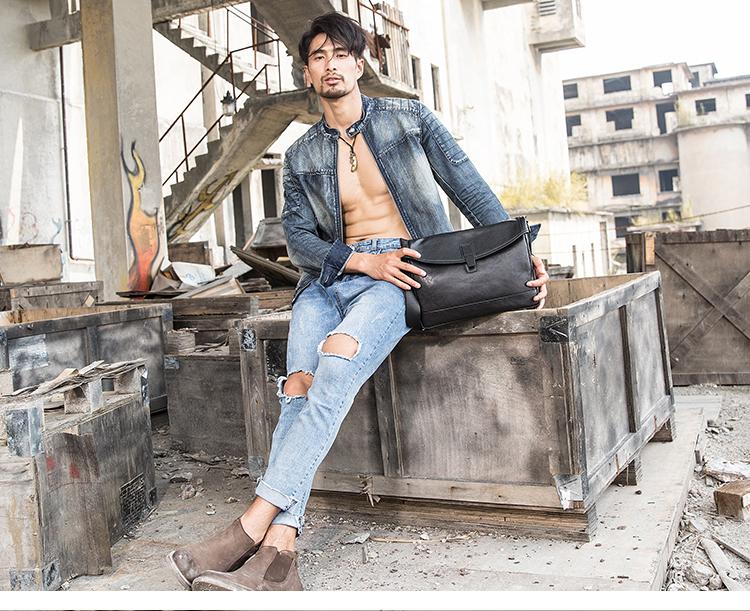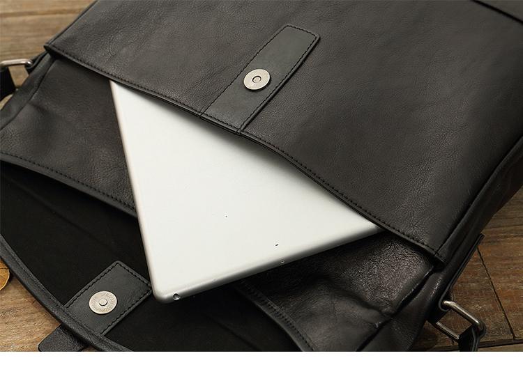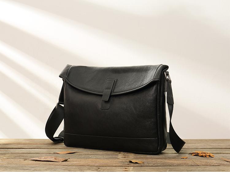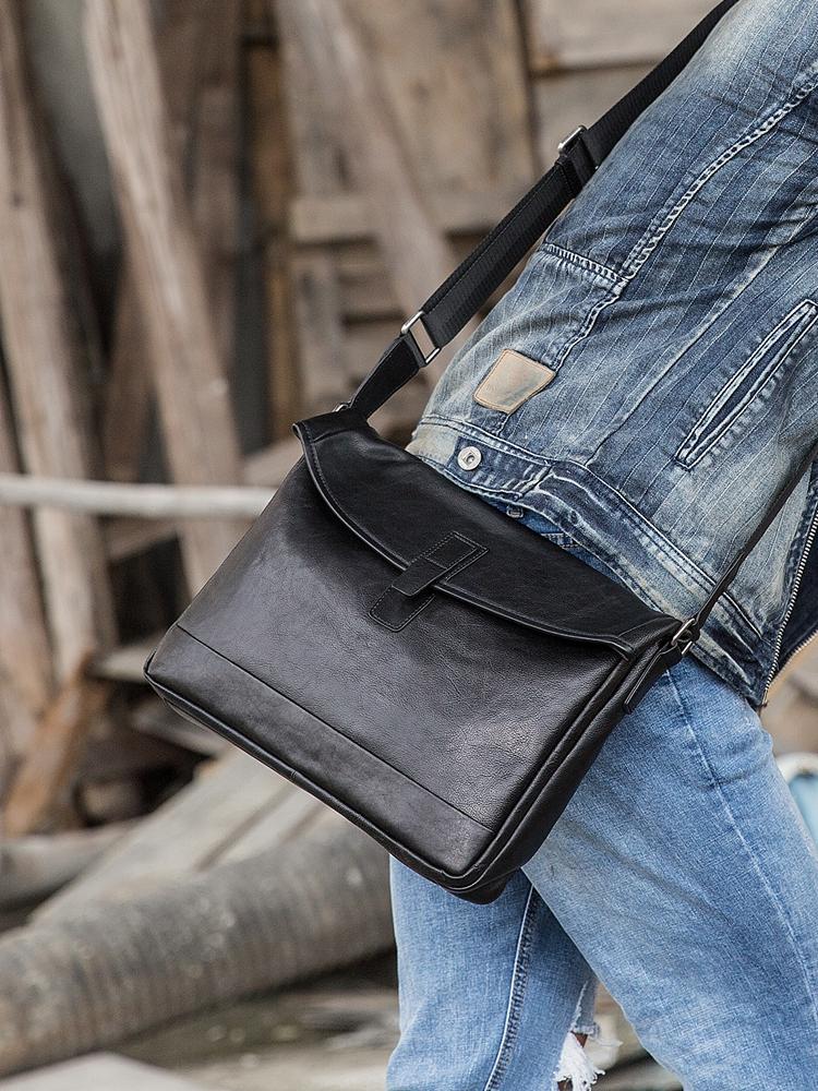 Design: Black Casual Leather Mens 10 inches Side Bag Postman Bag Black Messenger Bags Courier Bag for Men