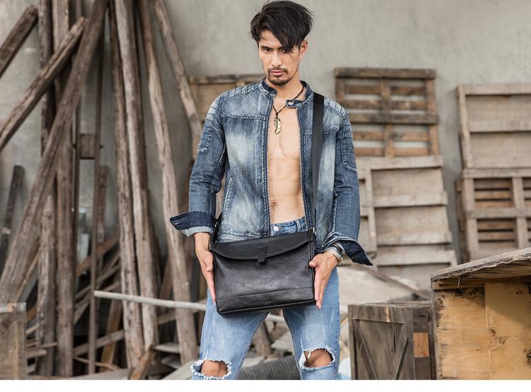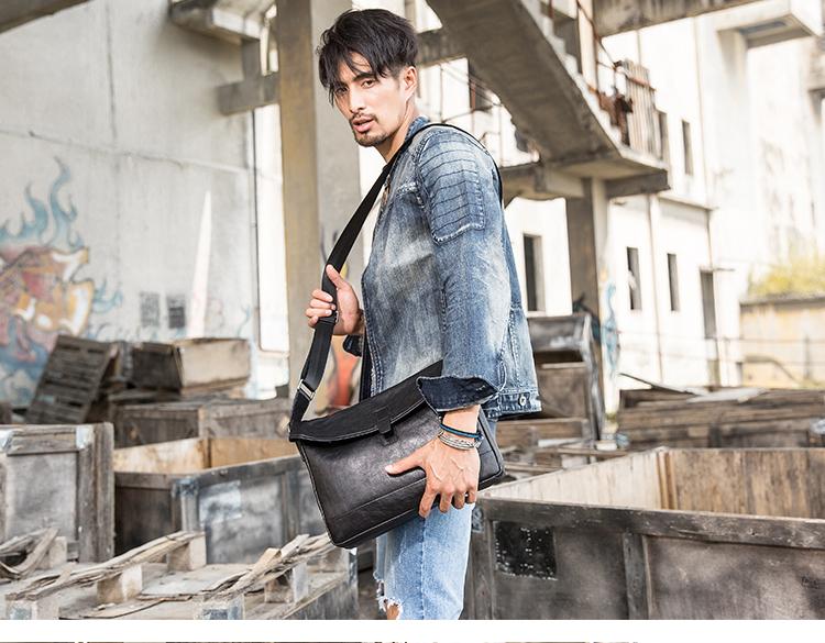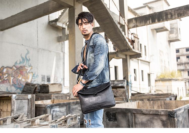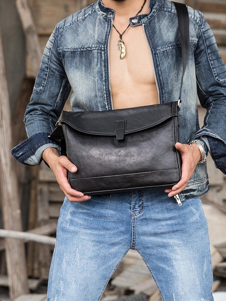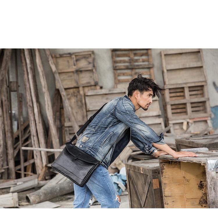 Style: Black Casual Leather Mens 10 inches Side Bag Postman Bag Black Messenger Bags Courier Bag for Men