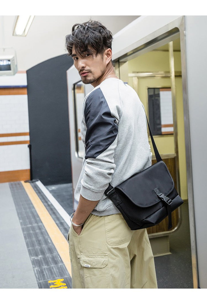 Design: Black Casual Mens 10 inches College Bag Shoulder Bag Black Messenger Bags Side Bag for Men