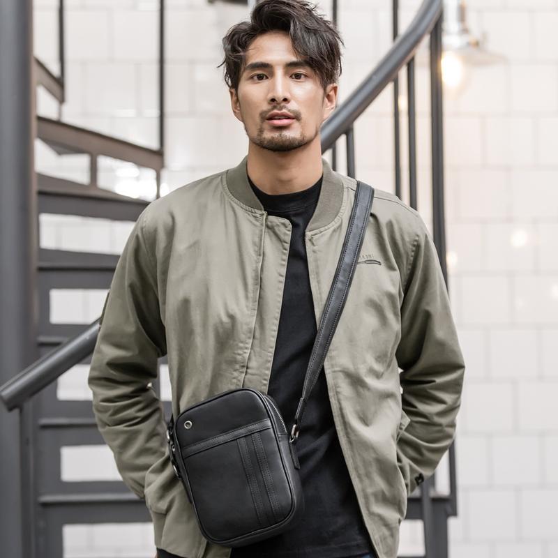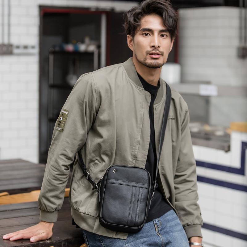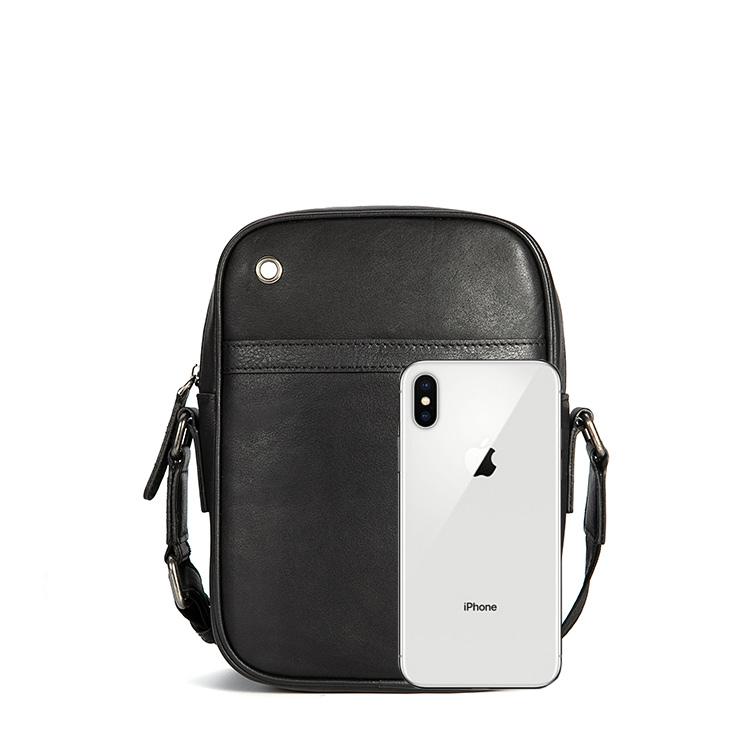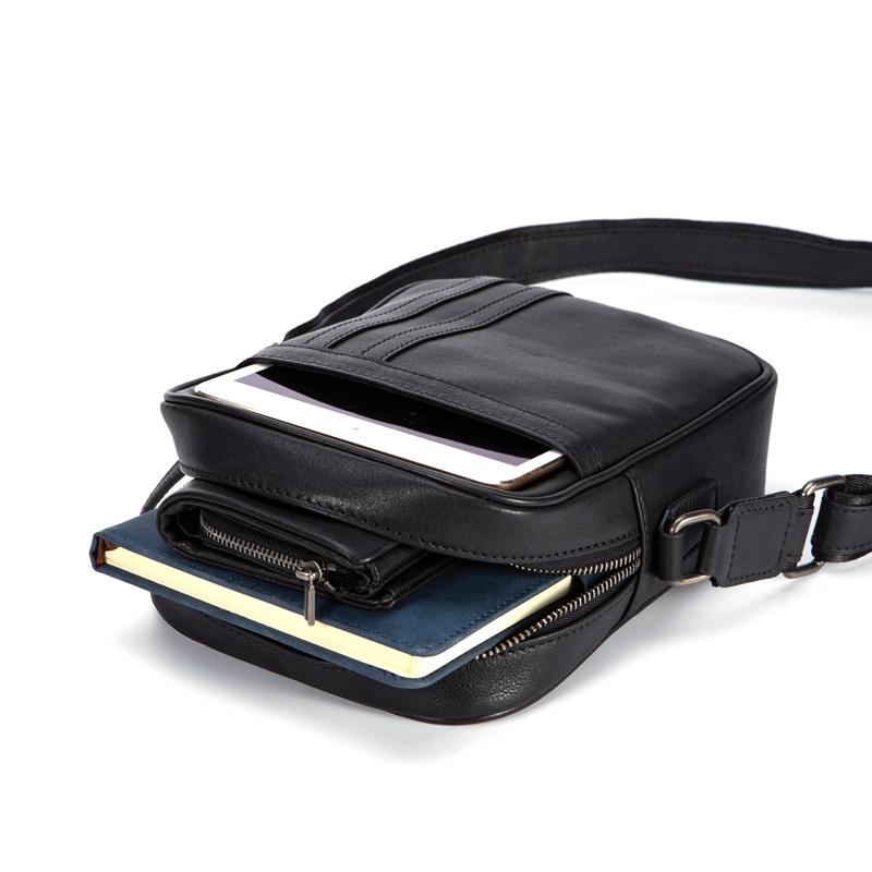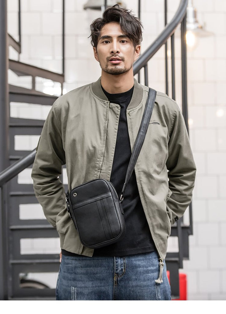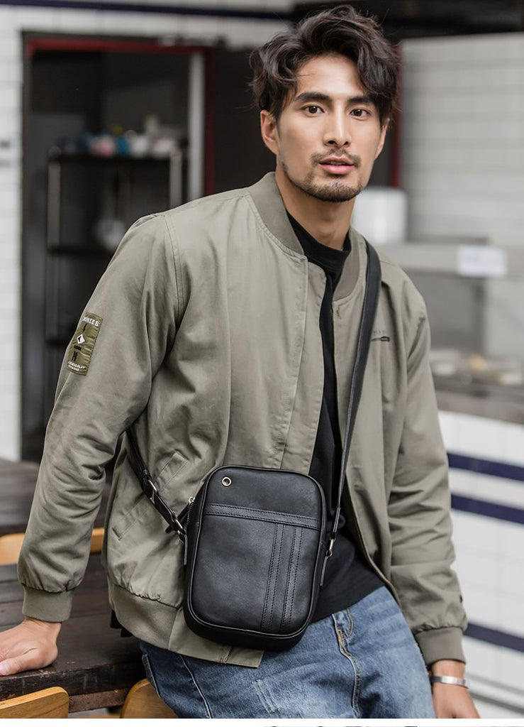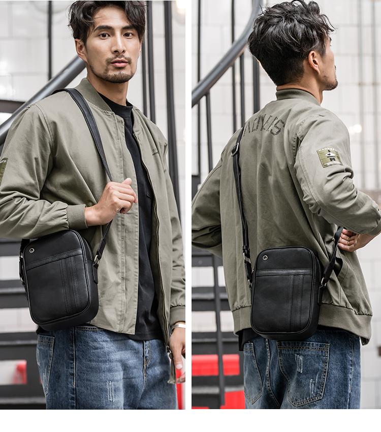 Black LEATHER MENS VERTICAL MINI SIDE BAG SMALL MESSENGER BAGS Black COURIER BAG FOR MEN