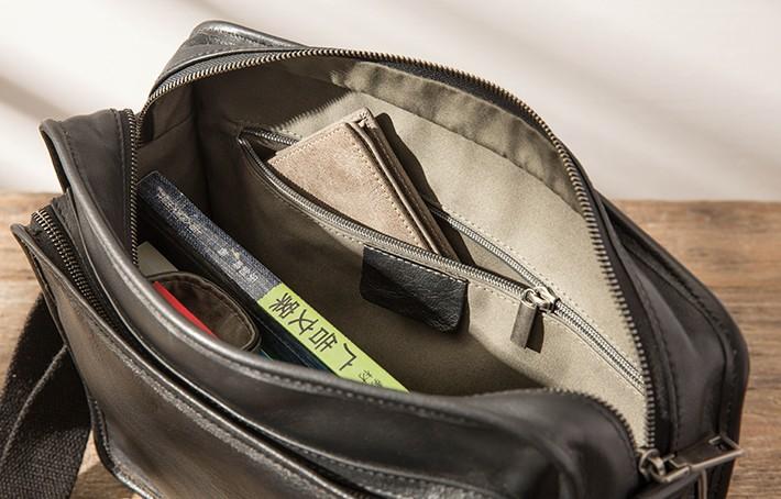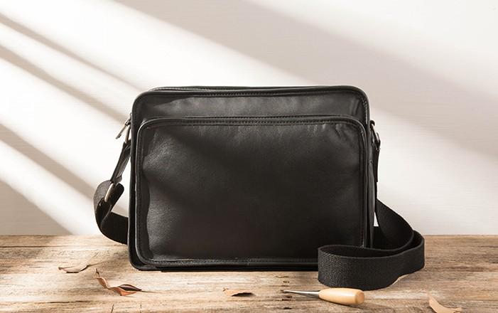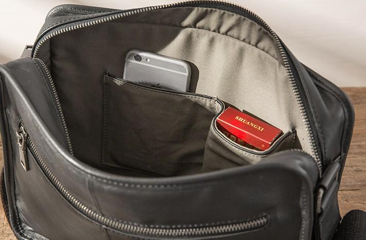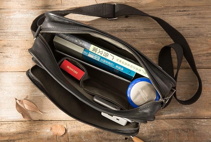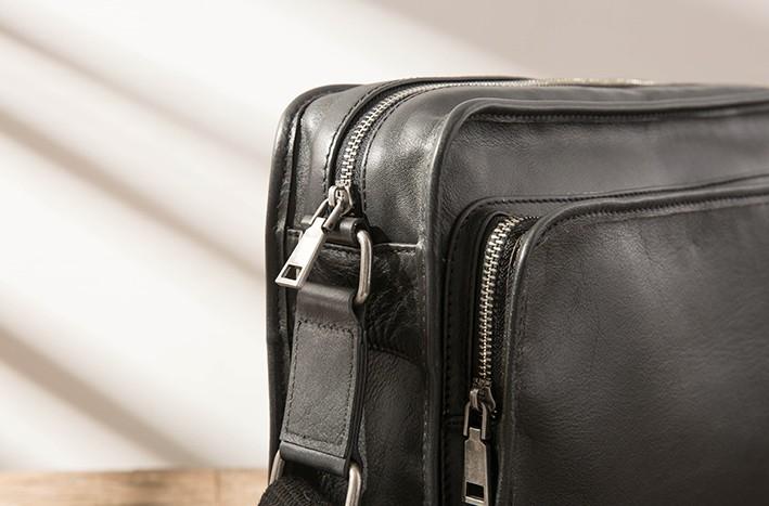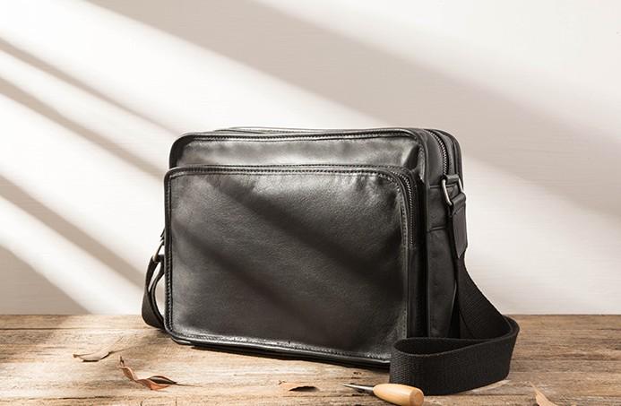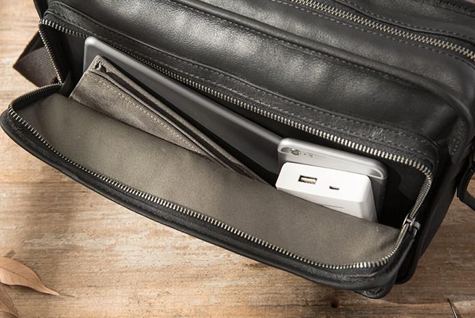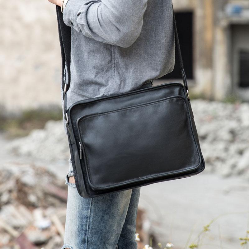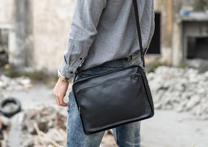 Design: Black Cool Leather Mens Shoulder Bags Messenger Bags for Men