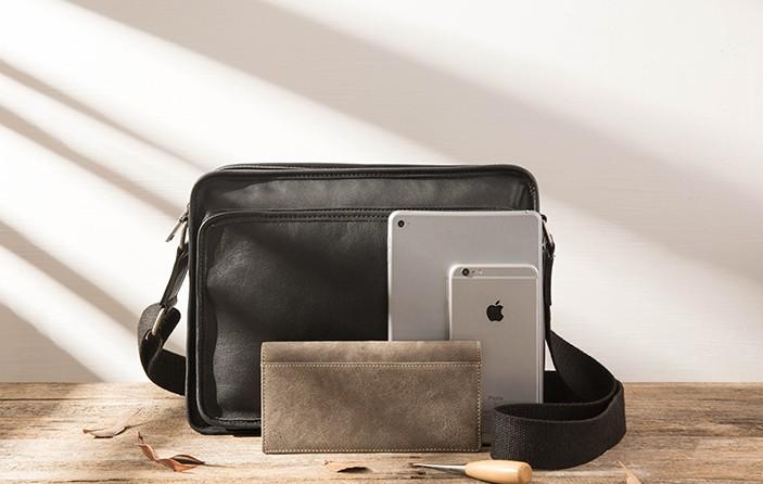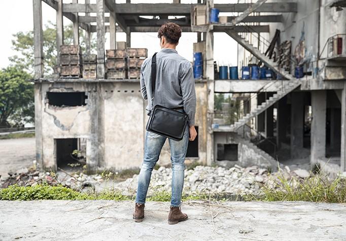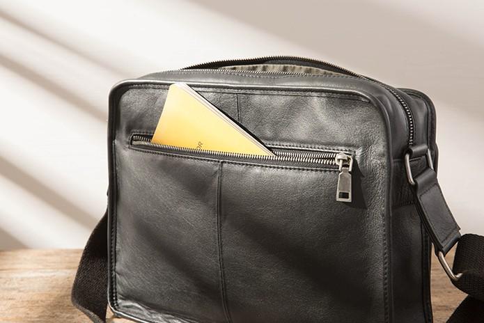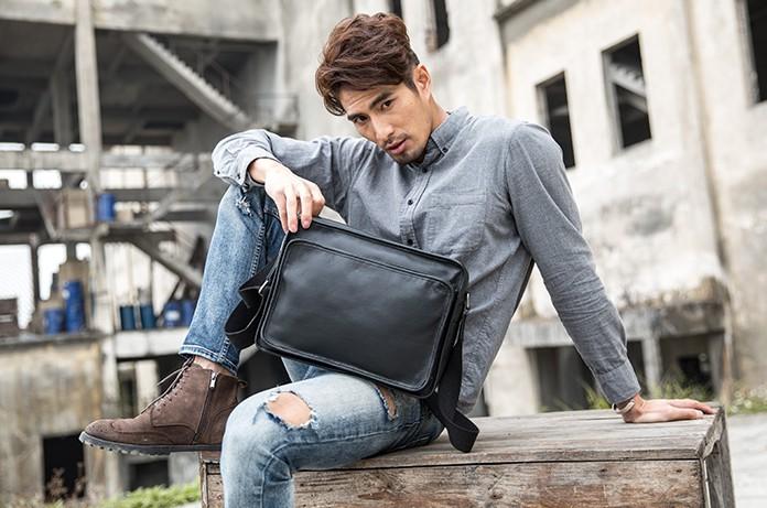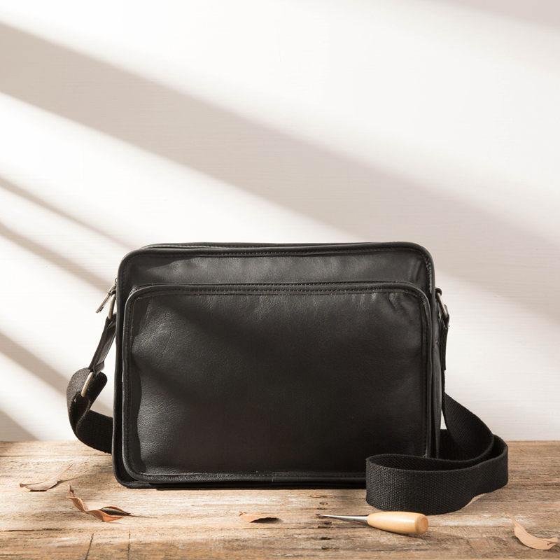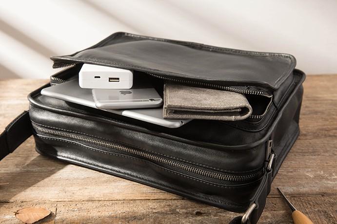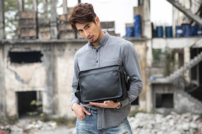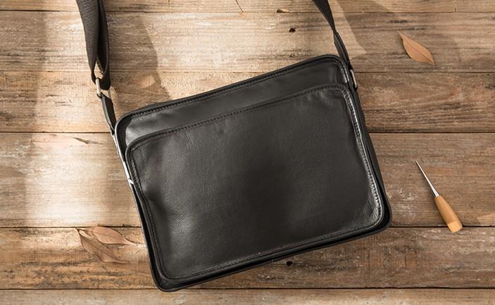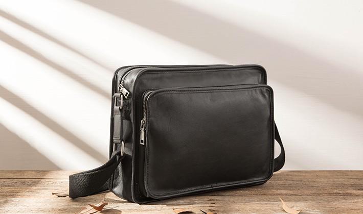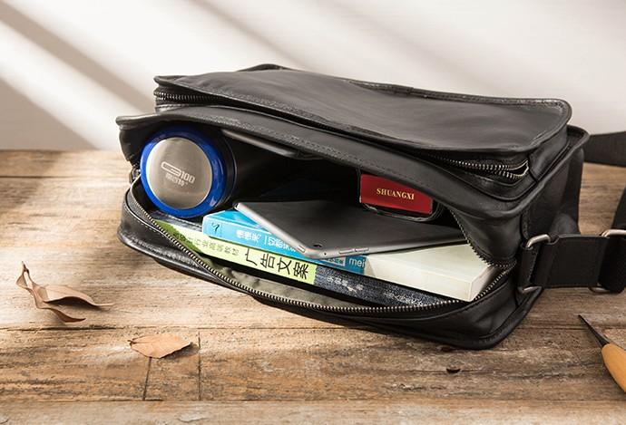 Design: Black Cool Leather Mens Shoulder Bags Messenger Bags for Men
