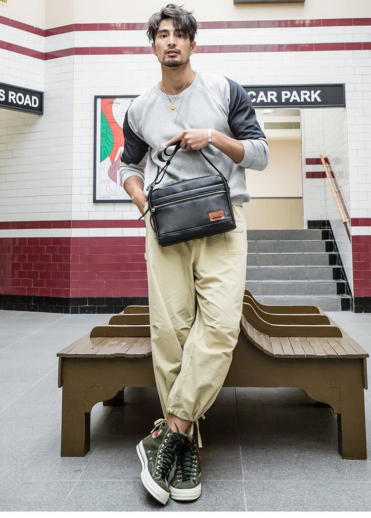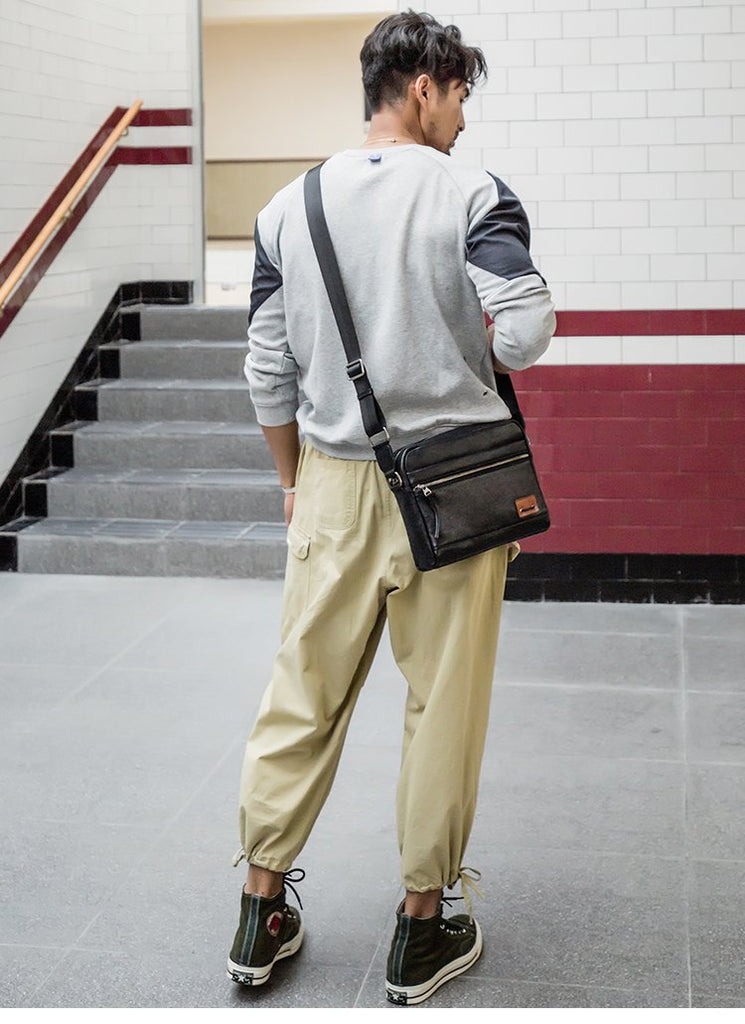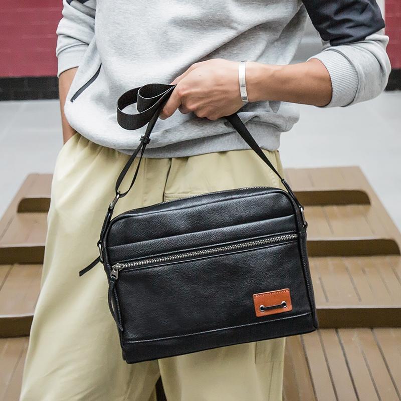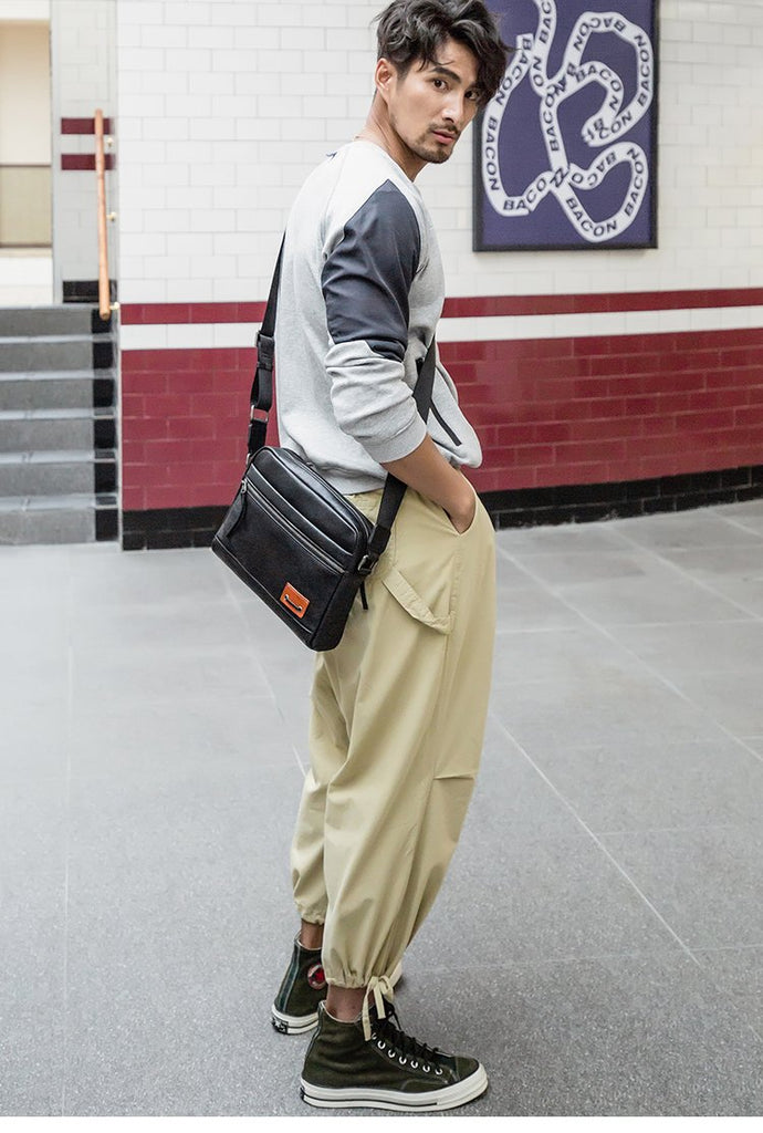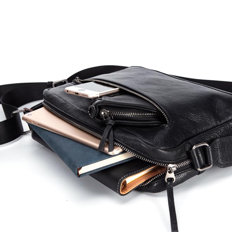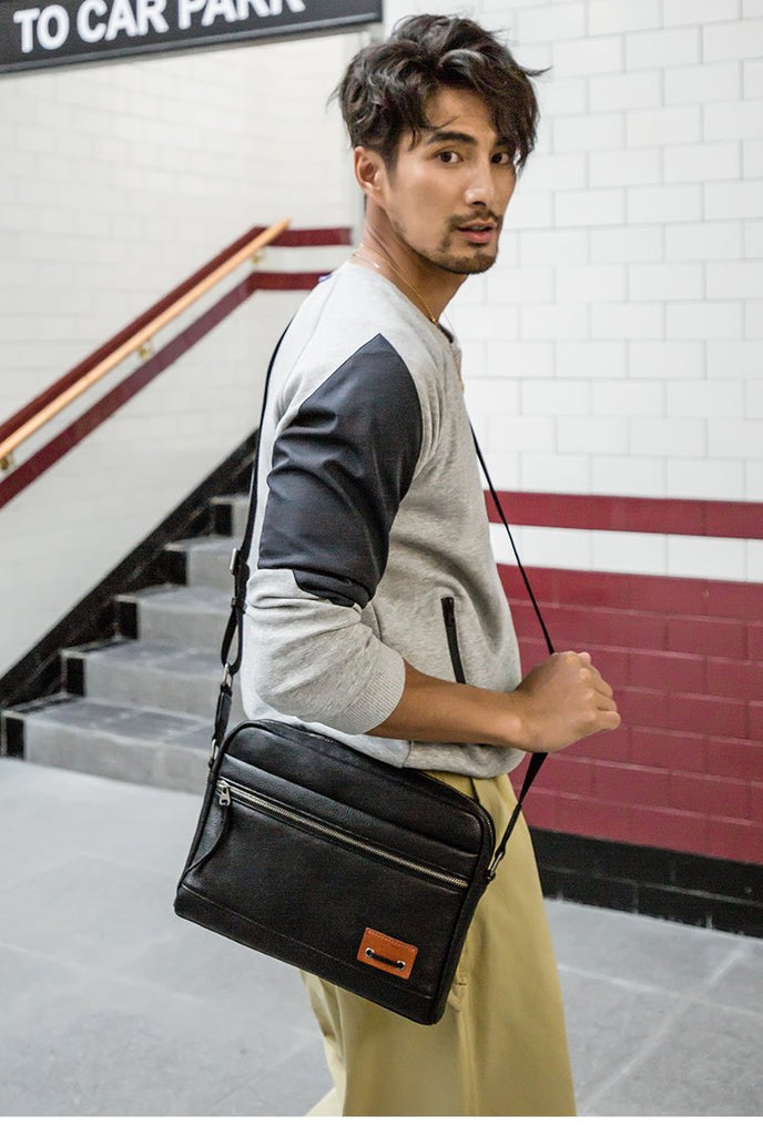 Design: Black Fashion Leather Mens 10 inches Shoulder Bag Black Messenger Bags Side Bag for Men