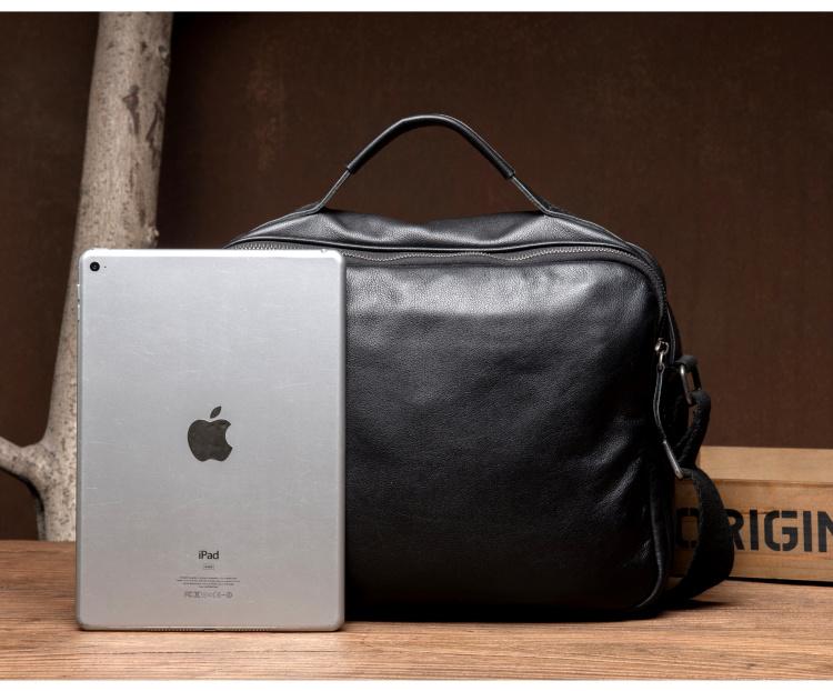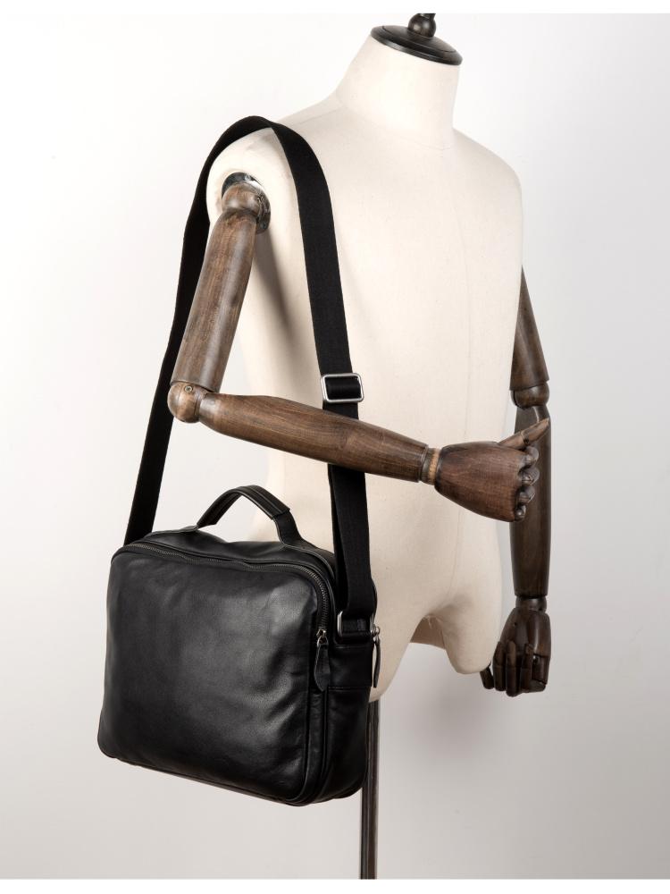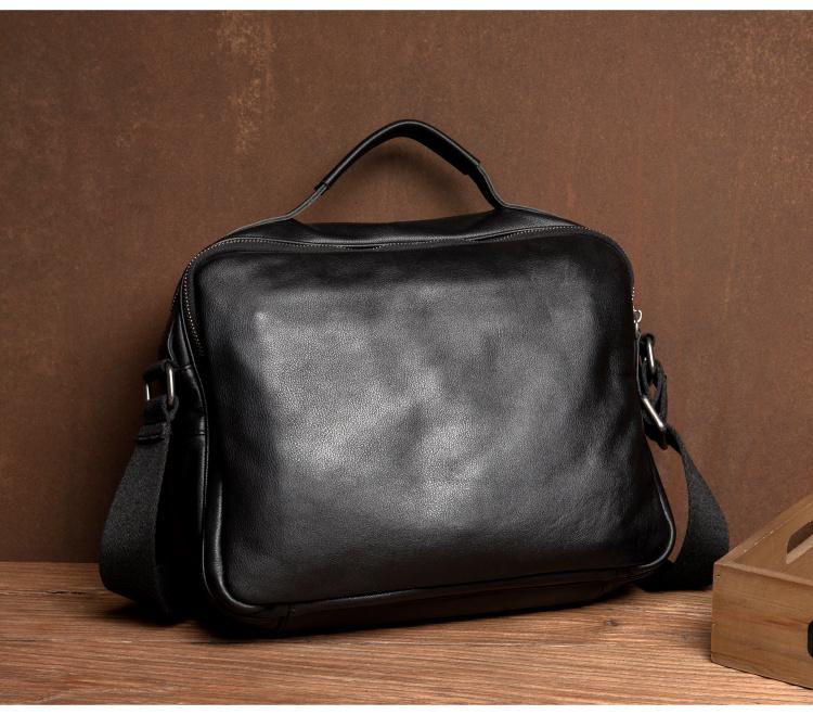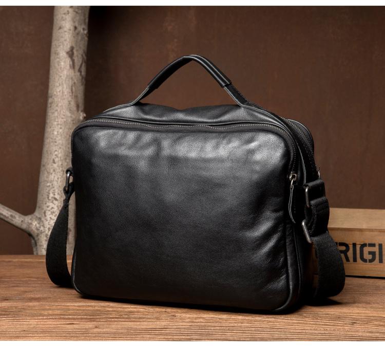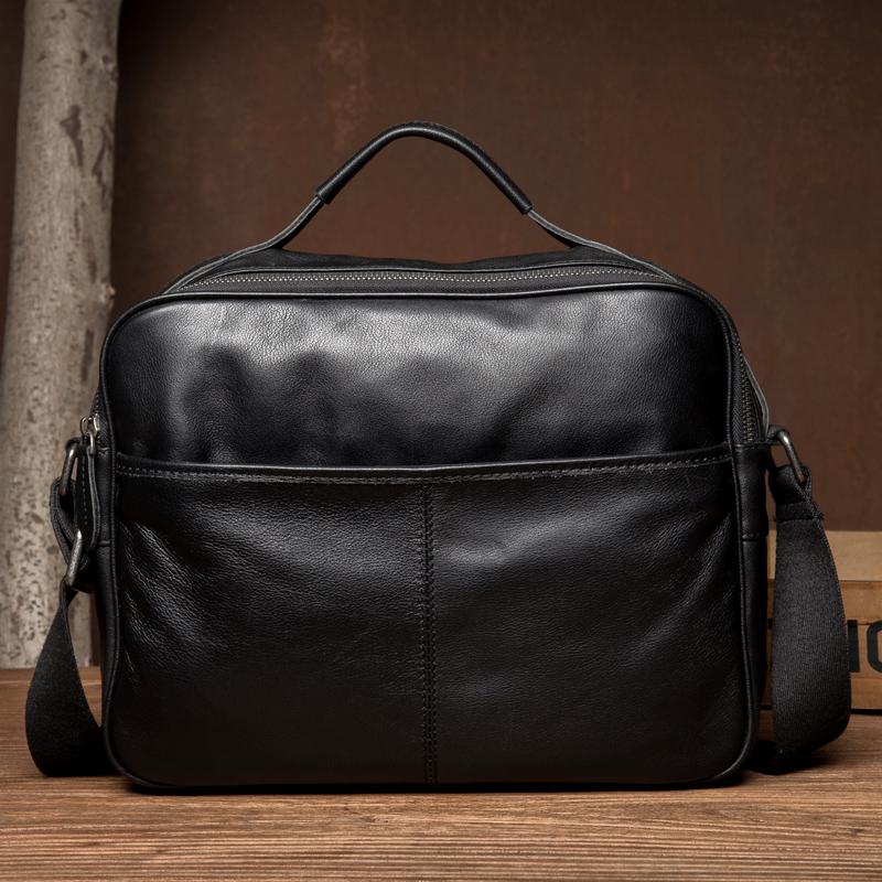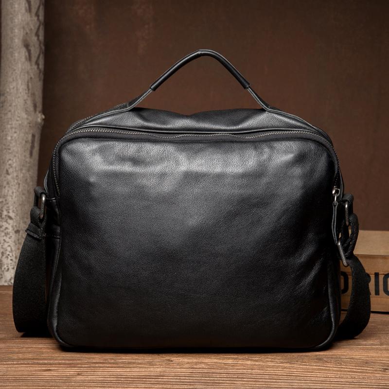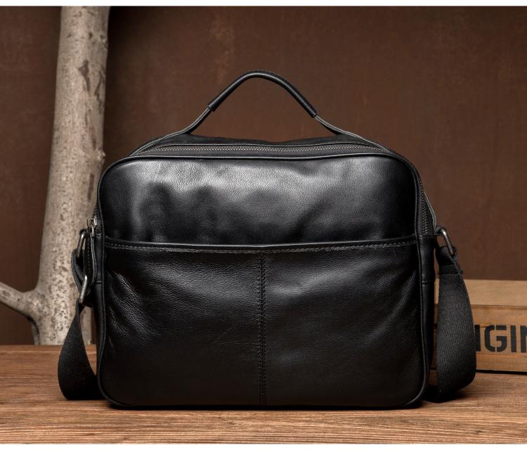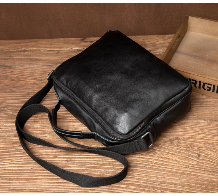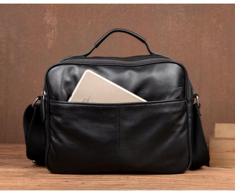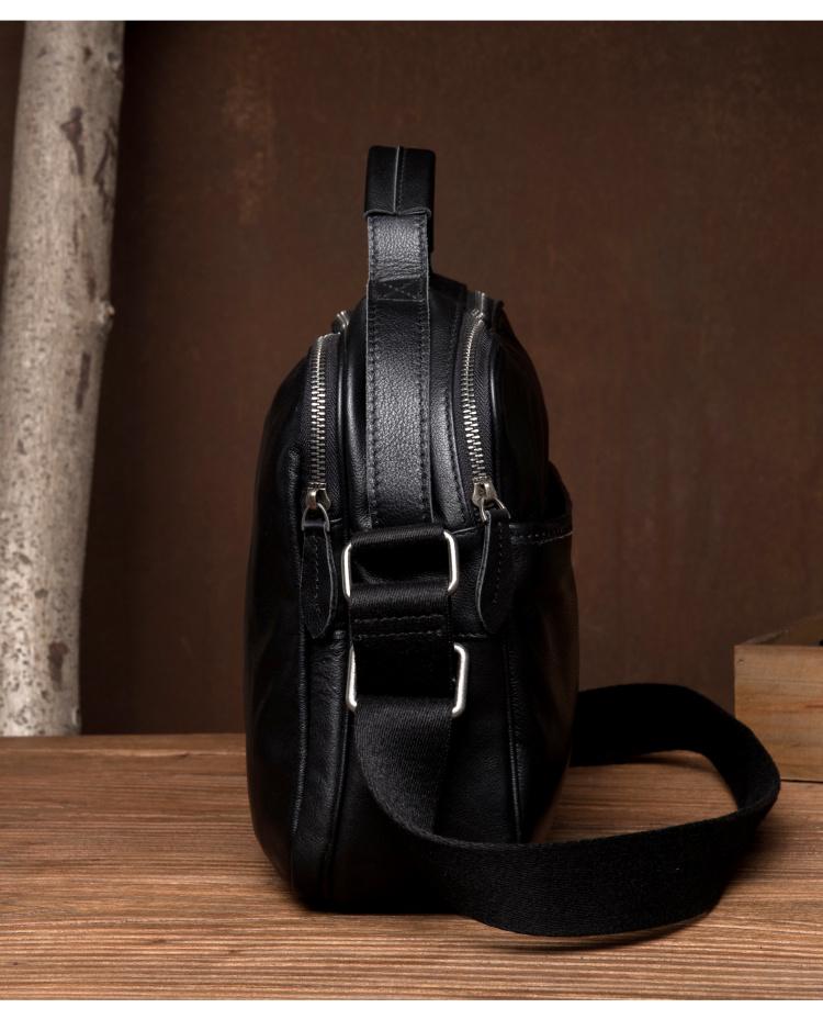 Design: Black Leather 11 inches Mens Small Messenger Bags Shoulder Bag for Men