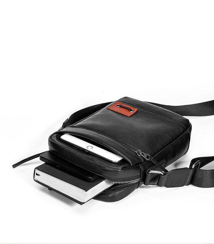 Design: Black Small Leather Mens 8 inches Soft Shoulder Bag Black Messenger Bags Side Bag for Men