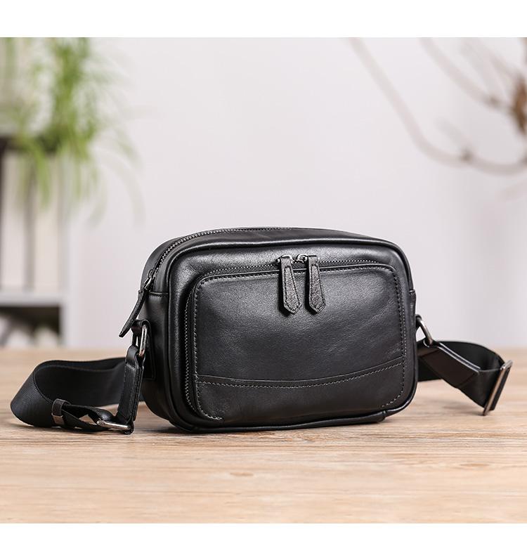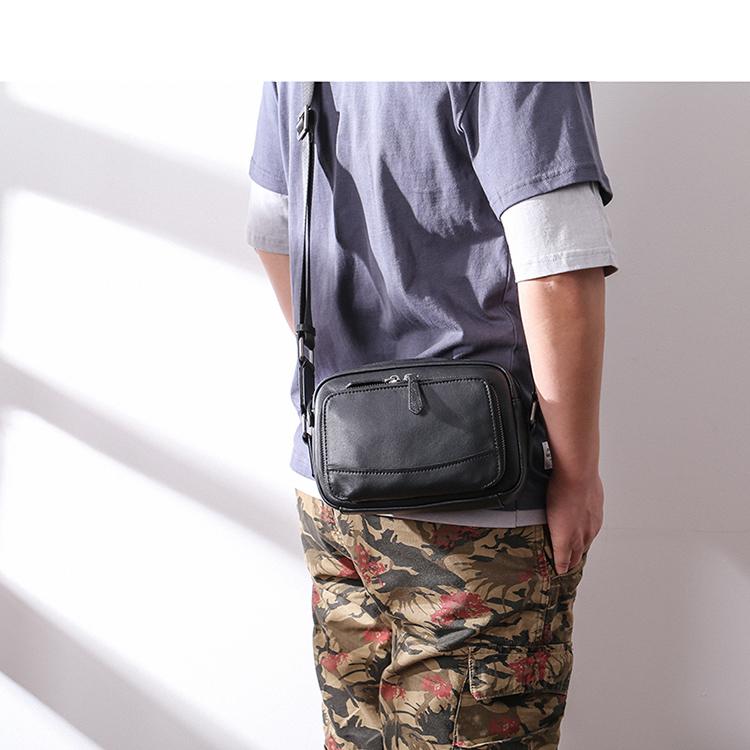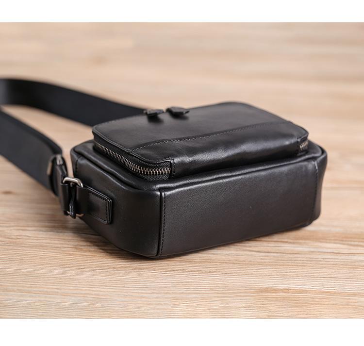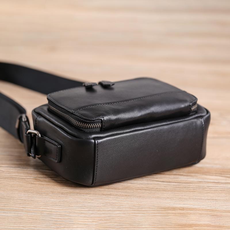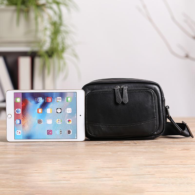 Style: Casual Black Leather MENS 8 inches Side Bag Black Messenger Bag Courier Bag For Men