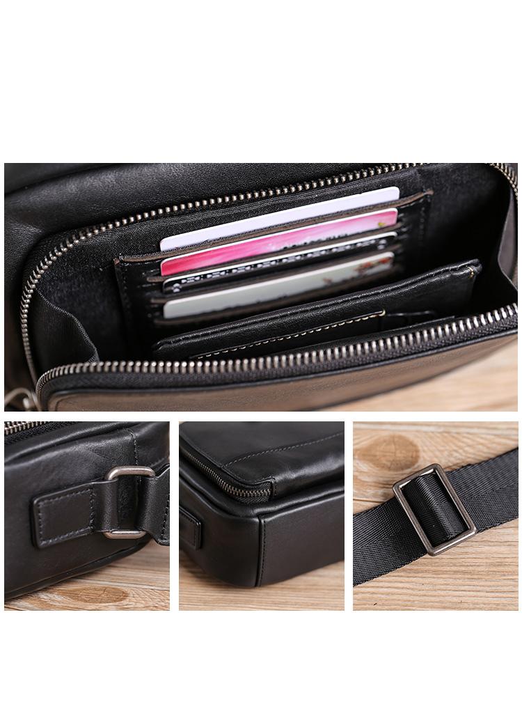 Design: Casual Black Leather MENS 8 inches Side Bag Black Messenger Bag Courier Bag For Men
