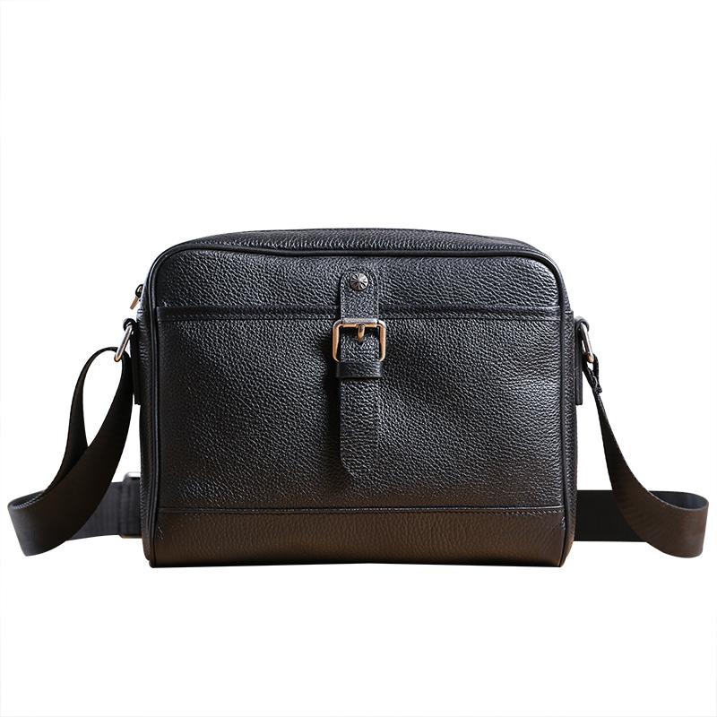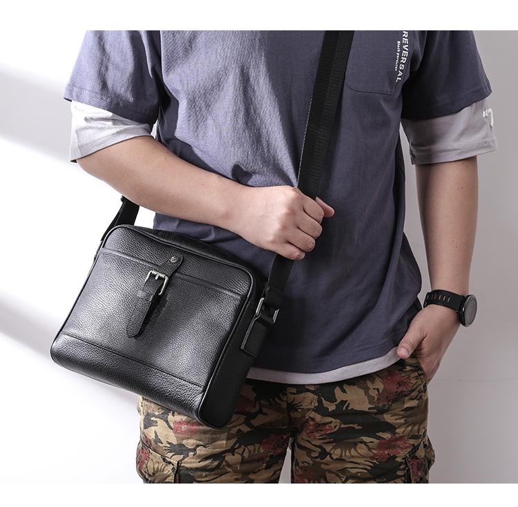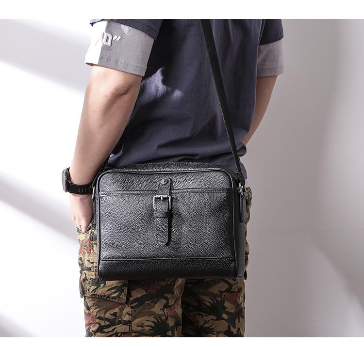 Style: Casual Black Leather MENS Horizontal Side Bag Black Messenger Bag Courier Bag For Men