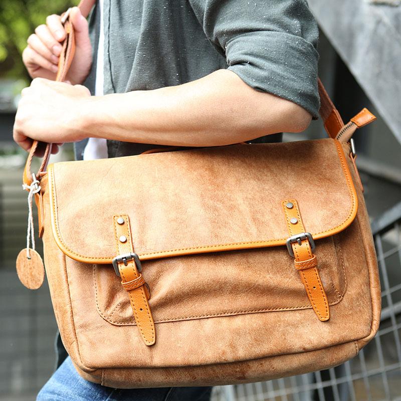 Design: Cool Leather Mens Messenger Bag Briefcase Shoulder Bag for men