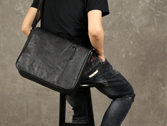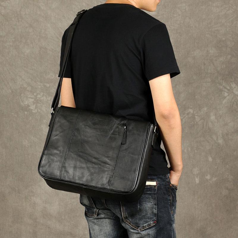 Design: Genuine Leather Mens Cool Messenger Bag Shoulder Bag Chest Bag Bike Bag Cycling Bag for men
