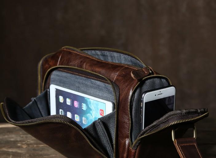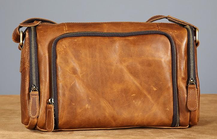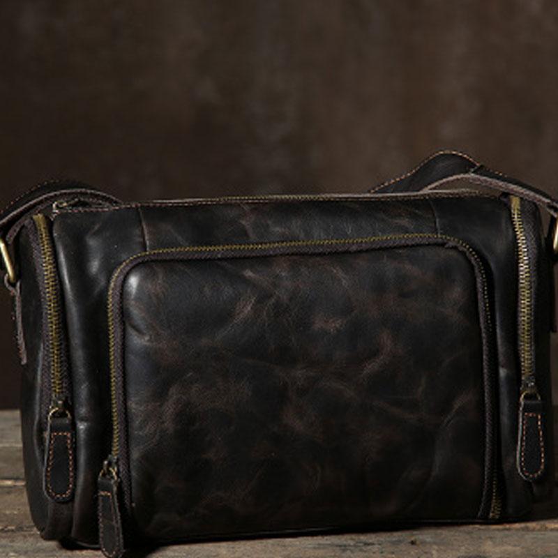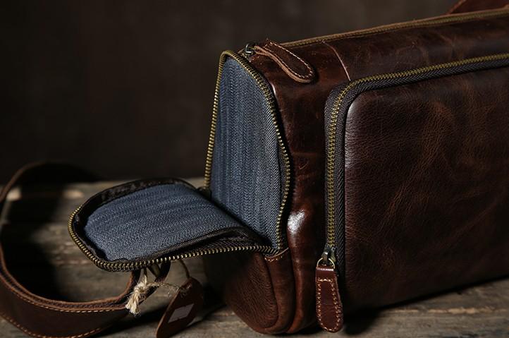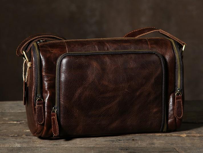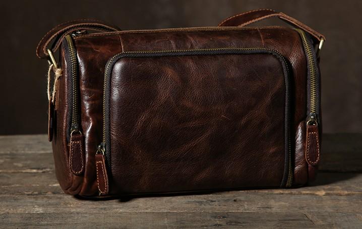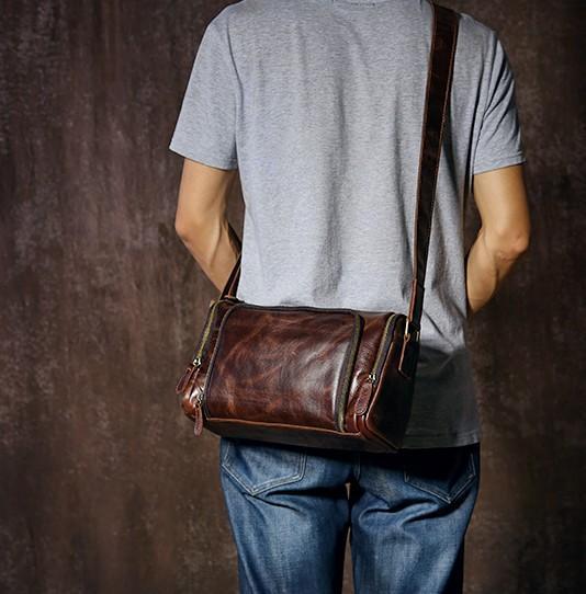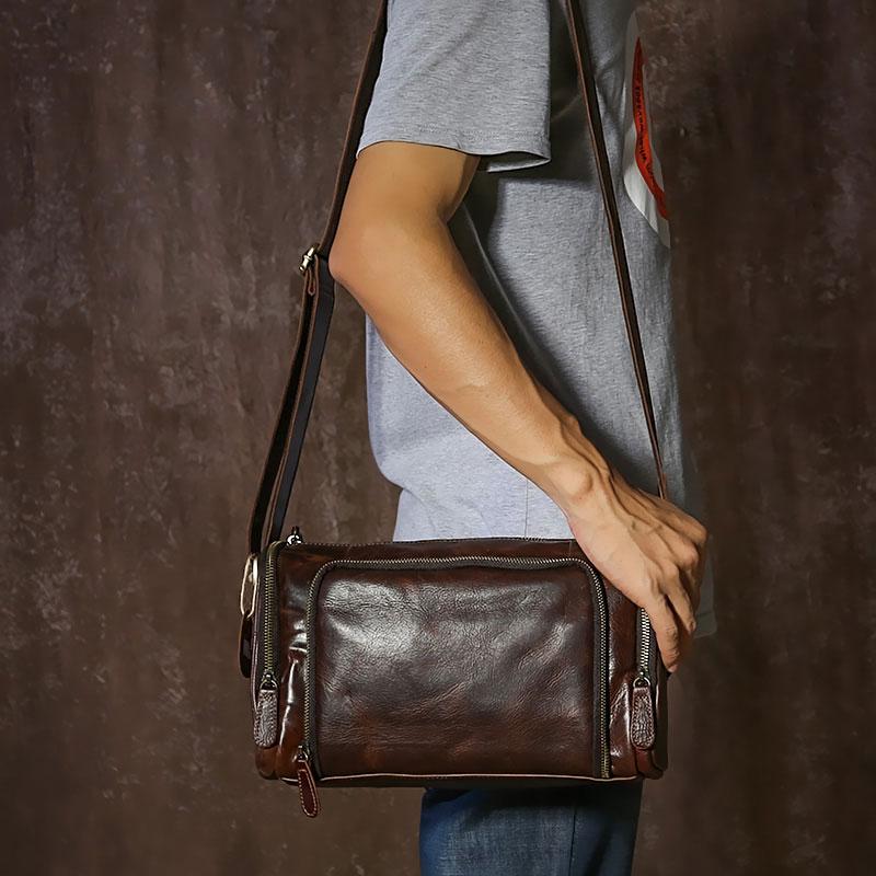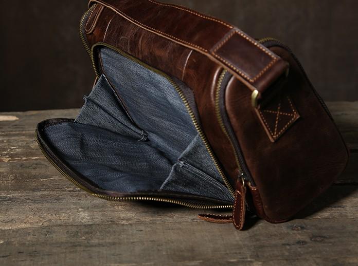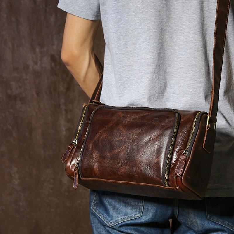 Style: Genuine Leather Mens Cool Shoulder Bag Messenger Bag Chest Bag Bike Bag Cycling Bag for men