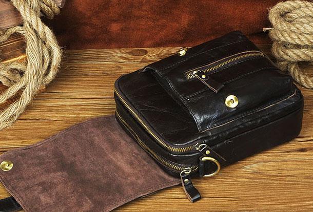 Design: Cool Mens Leather Small Messenger Bag Vintage CrossBody Bag Shoulder Bag For Men