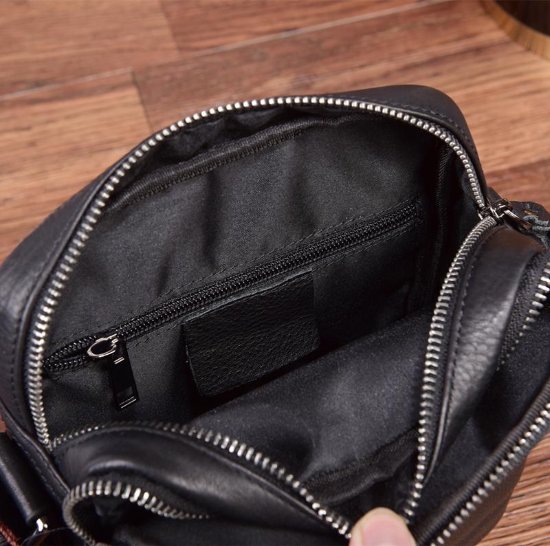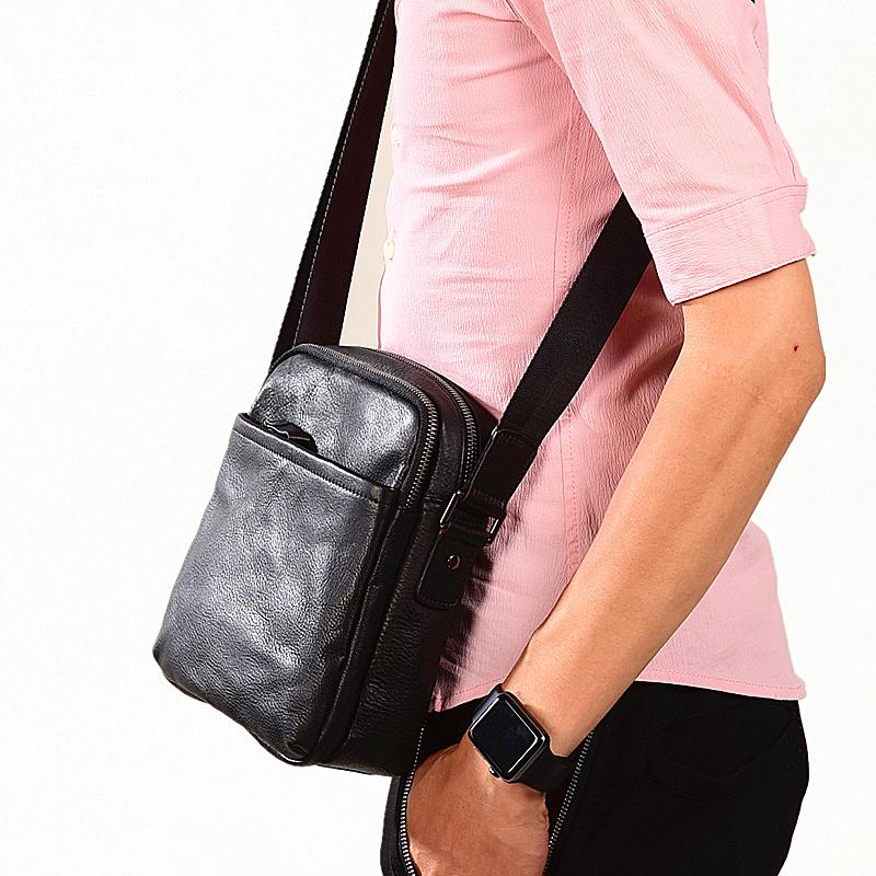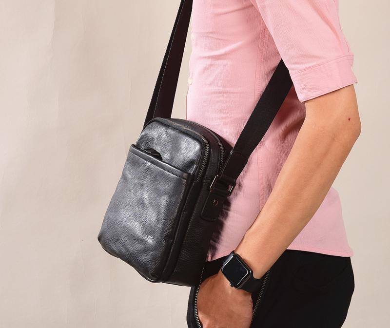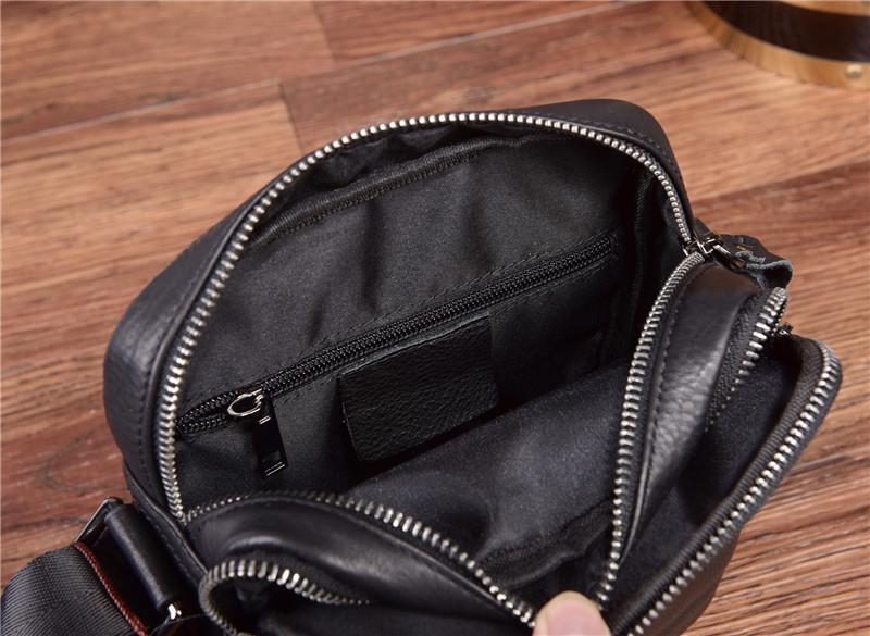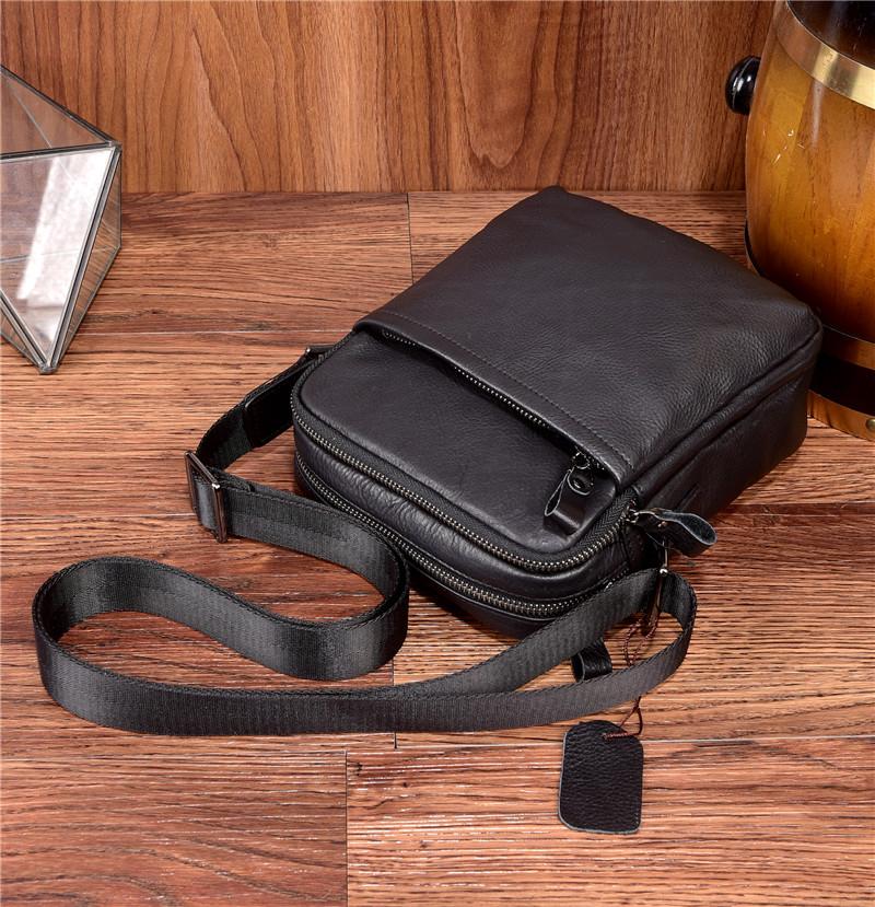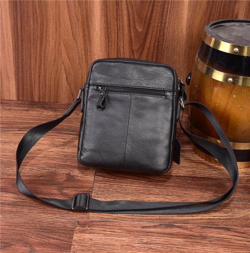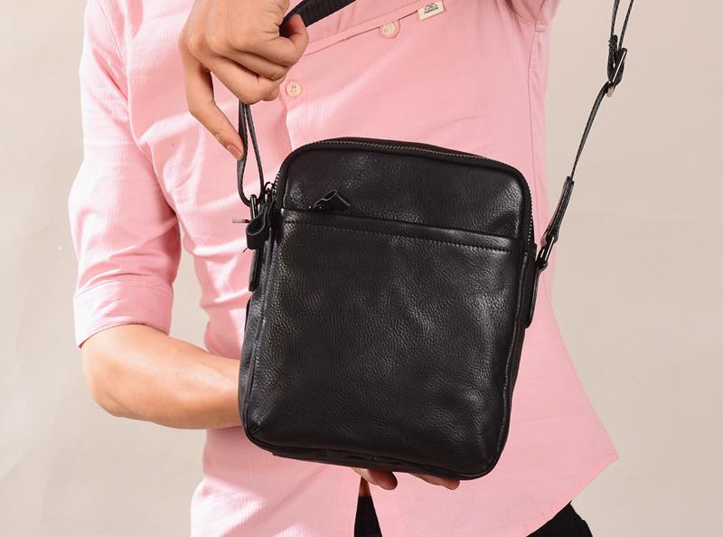 Design: Black Leather Mens Tablet Messenger Bag Small Side Bag Black Shoulder Bag For Men