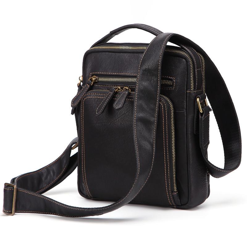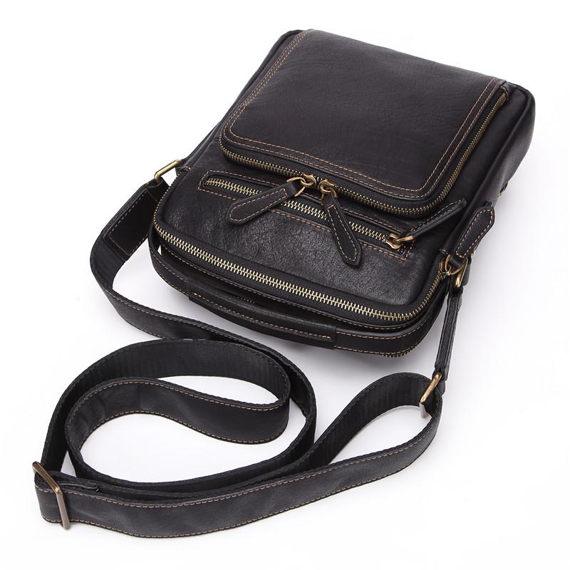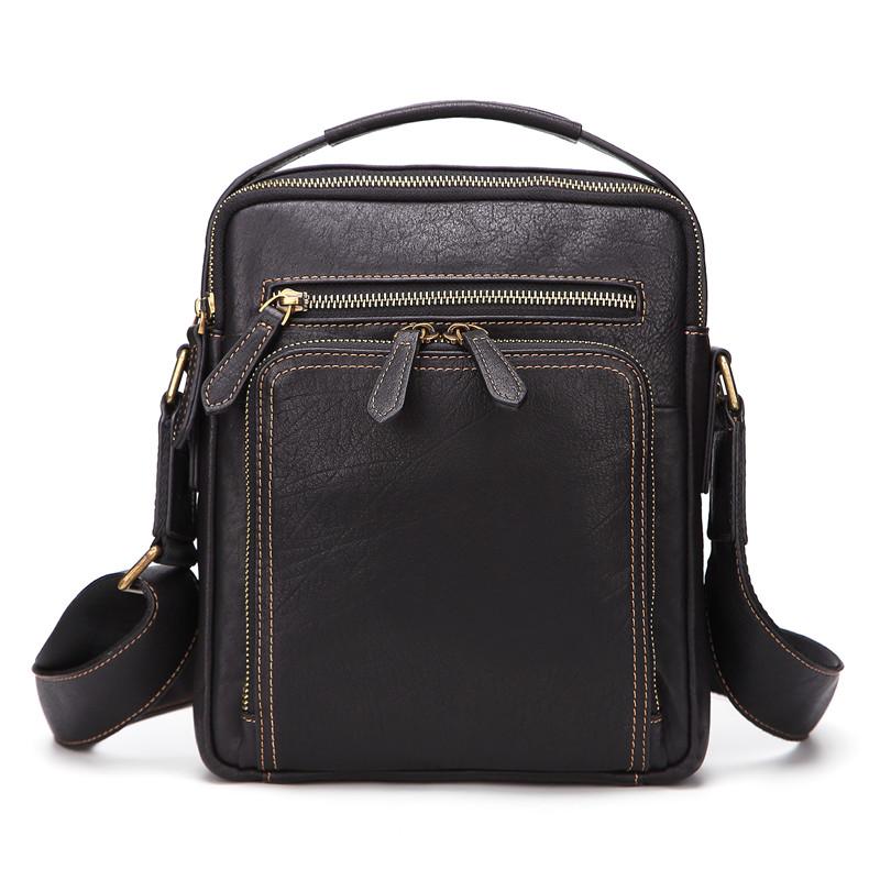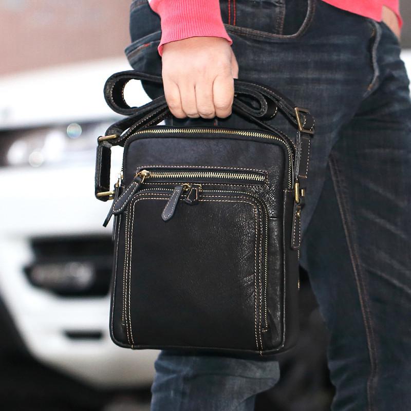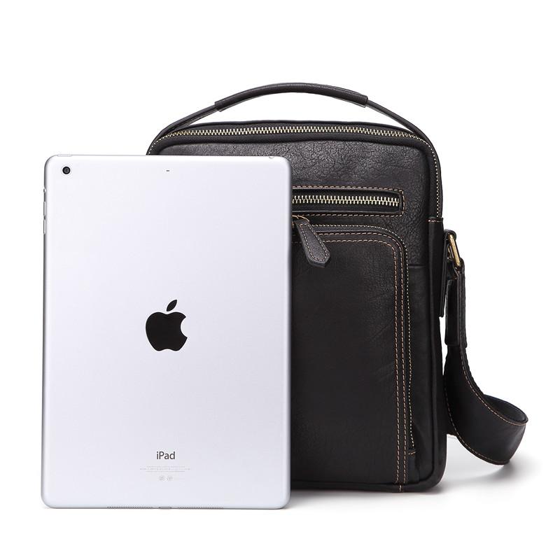 Design: Fashion Black Leather Men's Tablet Shoulder Bag Small Vertical Side Bag Messenger Bag For MenOverview: