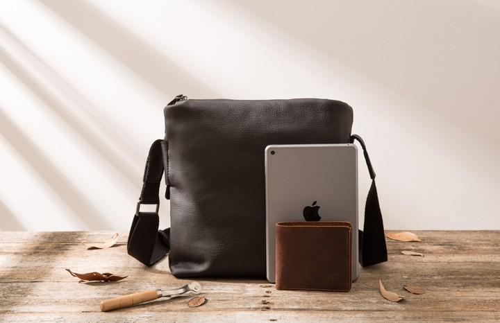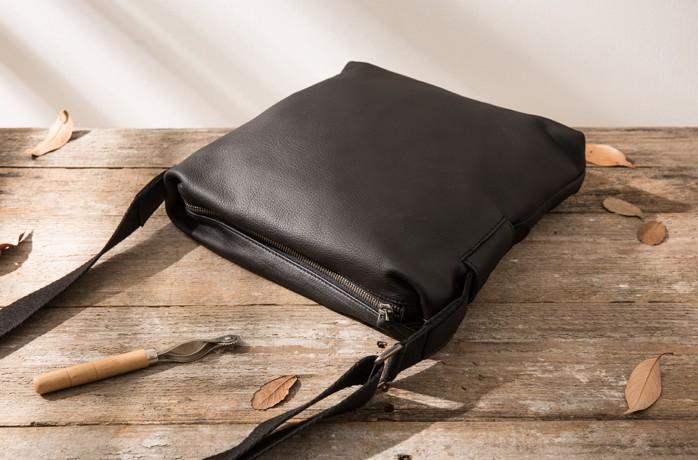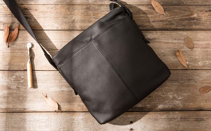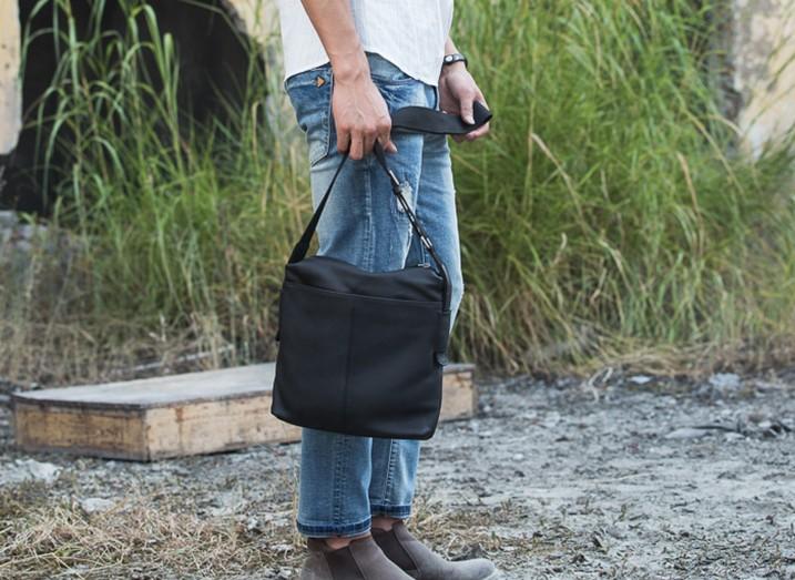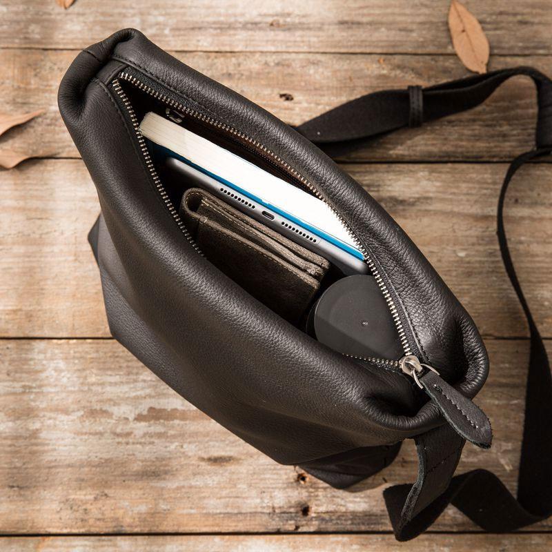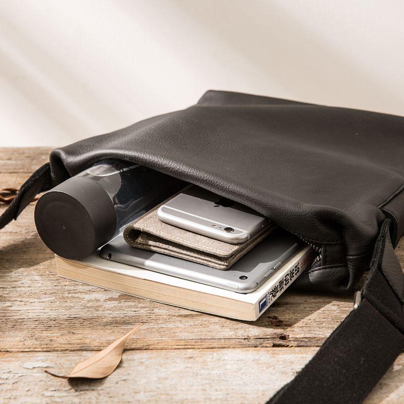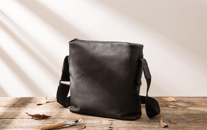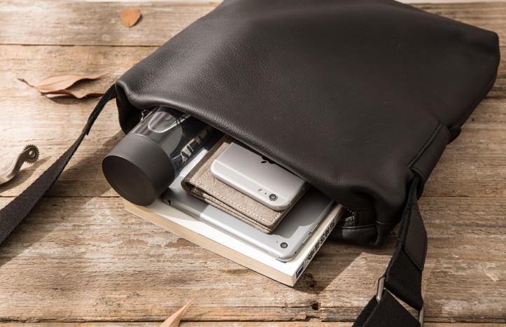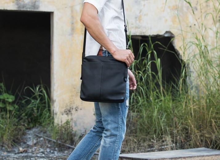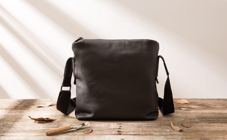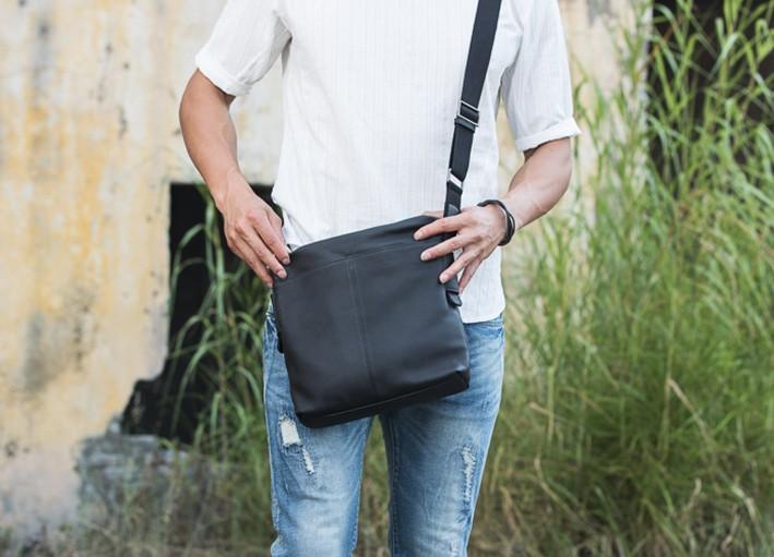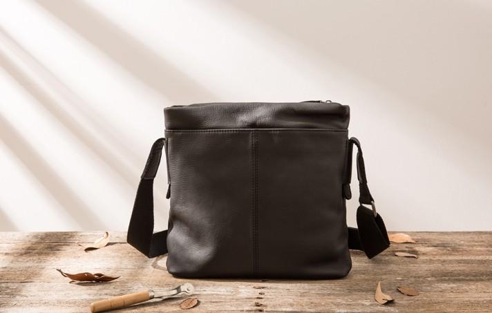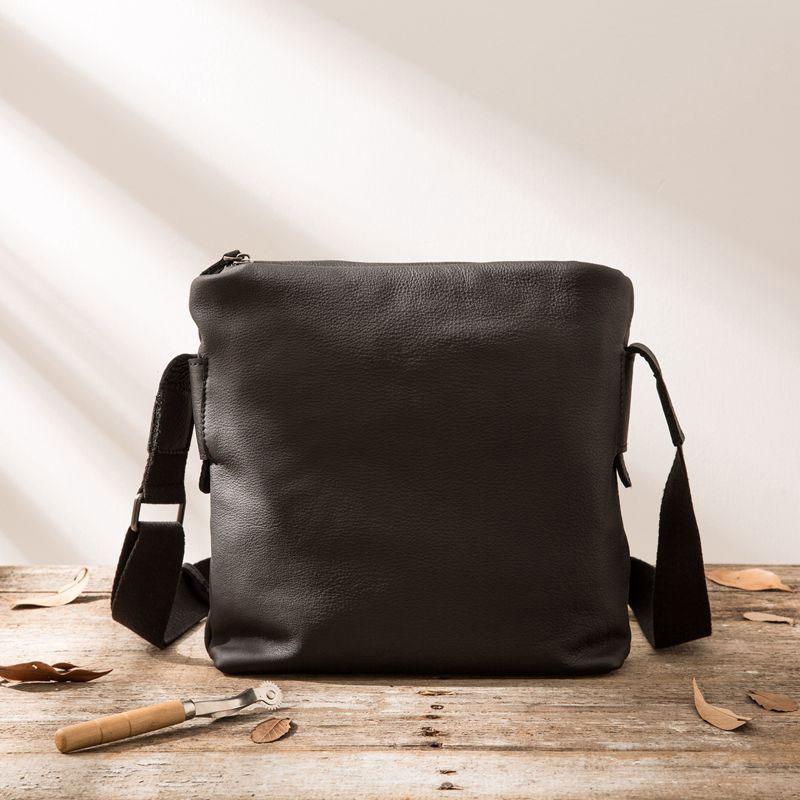 Design: Small Cool Black Square Leather Mens Messenger Bags Shoulder Bags for Men