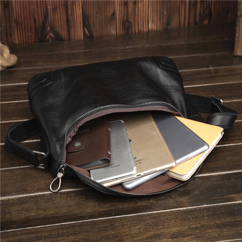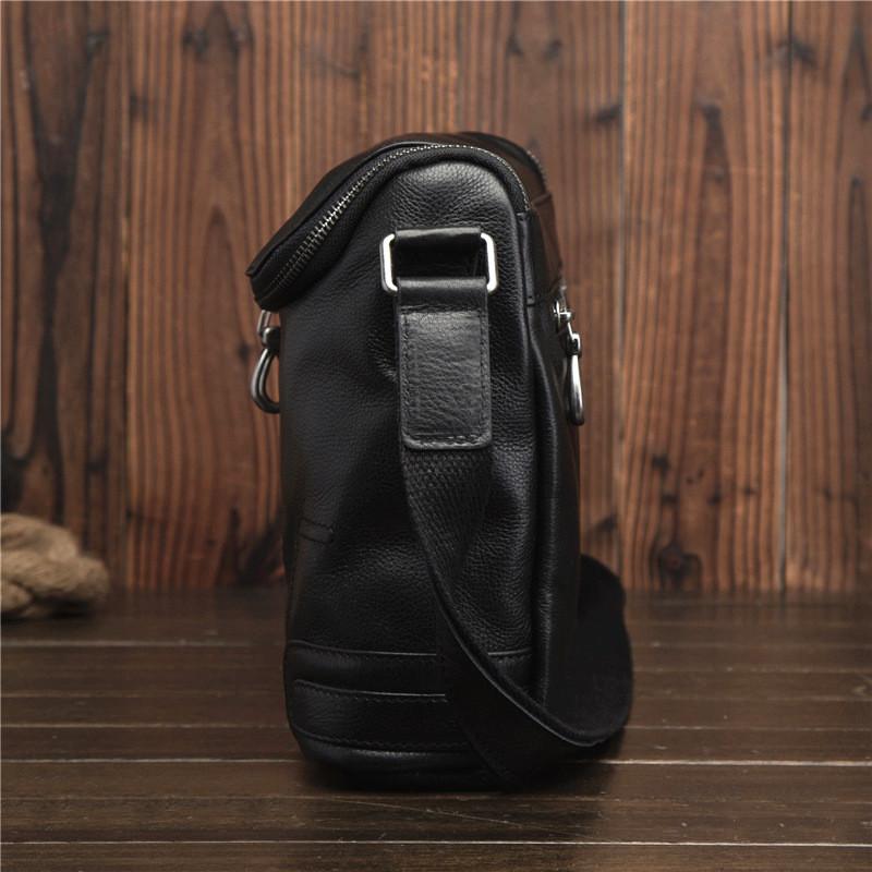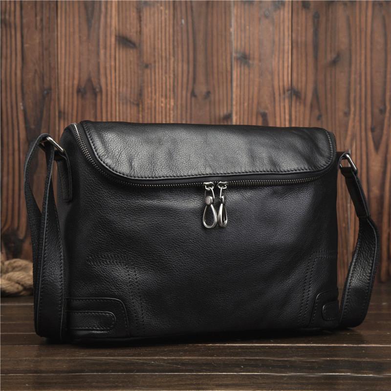 Design: Cool Black Leather Men's Messenger Bag Black Side Bag Courier Bag For MenOverview: